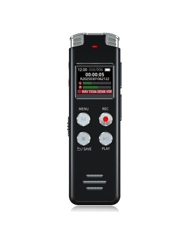 - Fácil de Operar y Potente: La grabadora digital EVISTR tiene solo 2 botones: presiona rec para comenzar a grabar de inmediato; presiona el botón de guardar para guardar la grabación. Puedes elegir el formato de grabación como wav/mp3; la grabadora de voz EVISTR con reproducción soporta repetición A-B, reproducción, rebobinado y reproducción a velocidad variable; se puede configurar para grabar en franjas horarias y grabar automáticamente para personalizar tu horario de grabación. La interfaz de menú optimizada es más clara y te proporciona una navegación más intuitiva y eficiente de las funciones