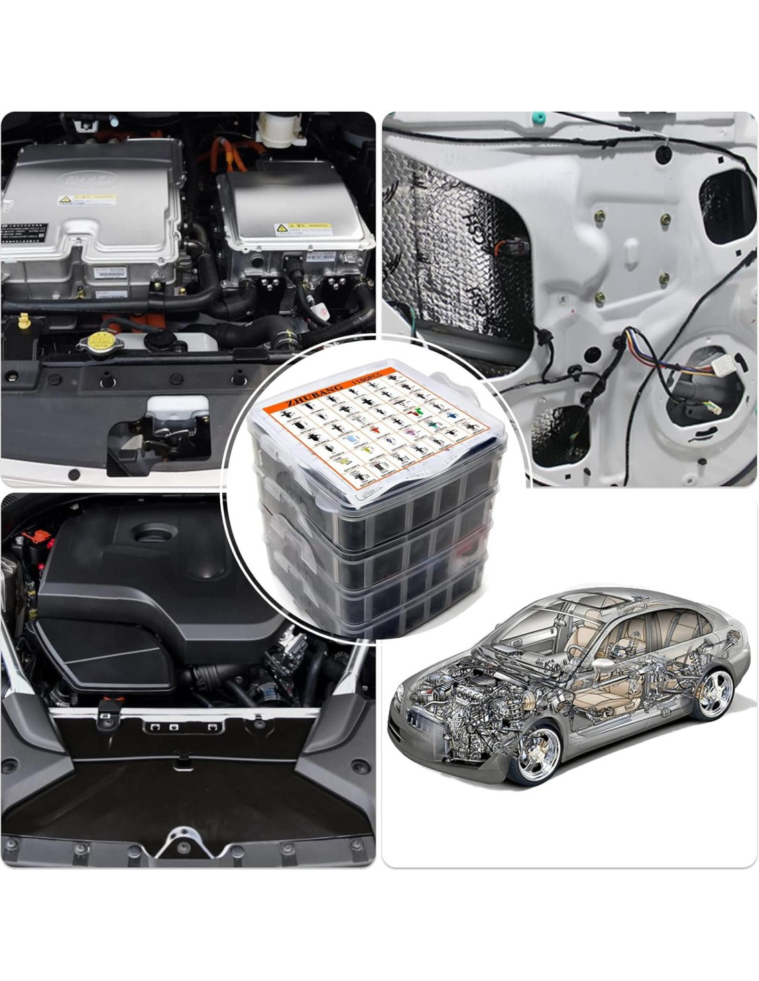 - TOTAL 1281 PCS: Kit de Clips de Retención de 38 tamaños más populares para paneles de puertas de automóviles, parachoques, guardabarros, cubiertas de motor y reemplazo de retenedores de escudo contra salpicaduras y 100 pcs de cojines de esponja resistentes a la vibración y 1 pcs de removedor de sujetadores para GM Ford Toyota Honda Chevrolet