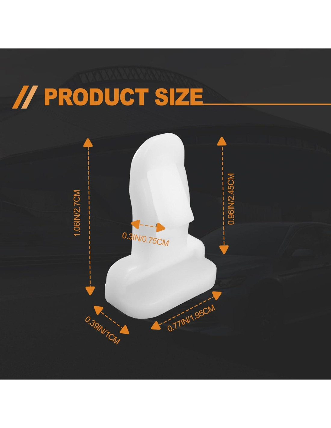 - Tamaño: Tamaño de Cabeza: 10mm x 20mm; Longitud del Vástago: 24mm; Longitud Total: 27mm