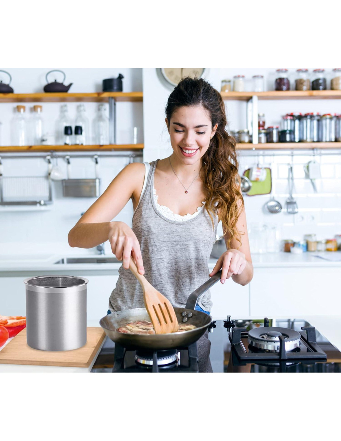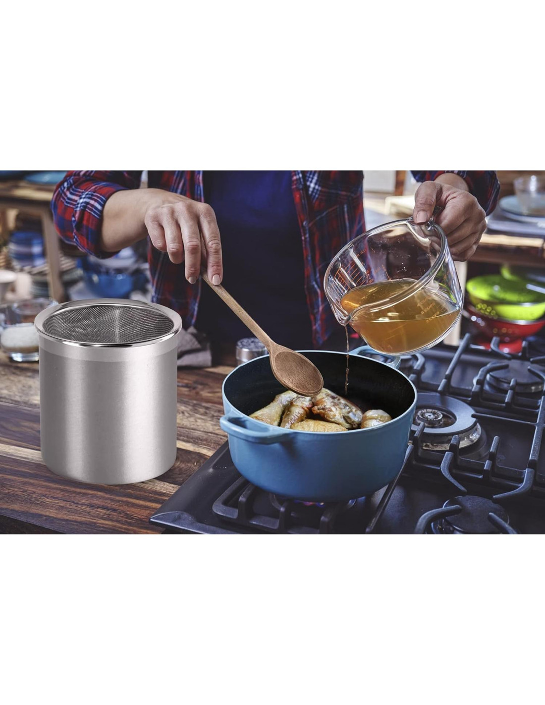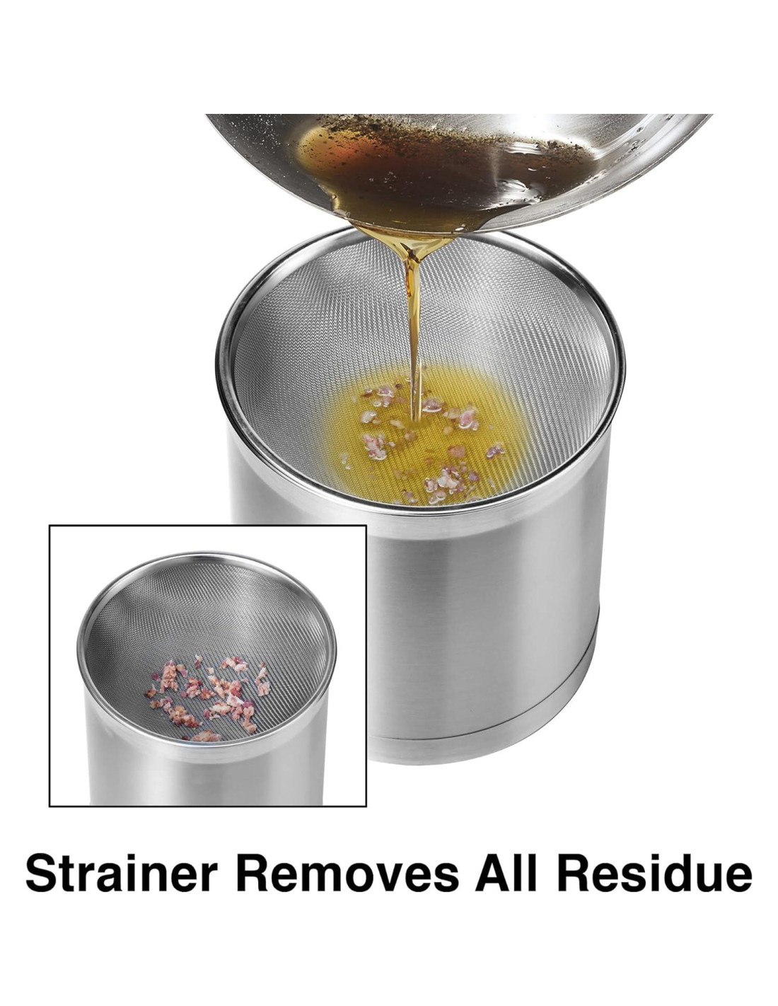 - CONSTRUCCIÓN RESISTENTE - Este colador y contenedor de aceite está hecho de acero inoxidable robusto.