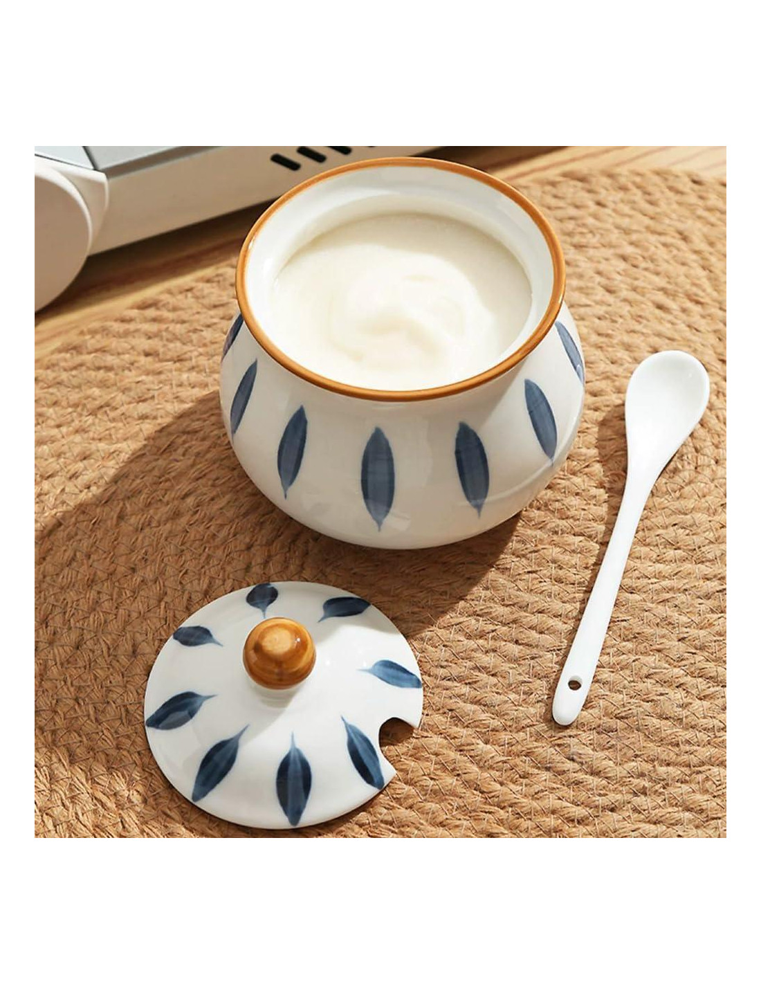 - Cerámica Duradera: El contenedor de grasa de tocino Elyfree con tapa está hecho de cerámica de alta calidad, que es más gruesa y resistente que la cerámica esmaltada. El esmalte de color uniforme con un patrón exquisito se ve elegante y atractivo en la cocina.