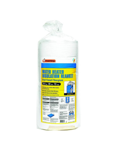 - Las mantas de aislamiento de fibra de vidrio con respaldo de vinilo están diseñadas para calentadores de agua de gas, aceite o eléctricos de hasta 60 galones (227.1 litros)