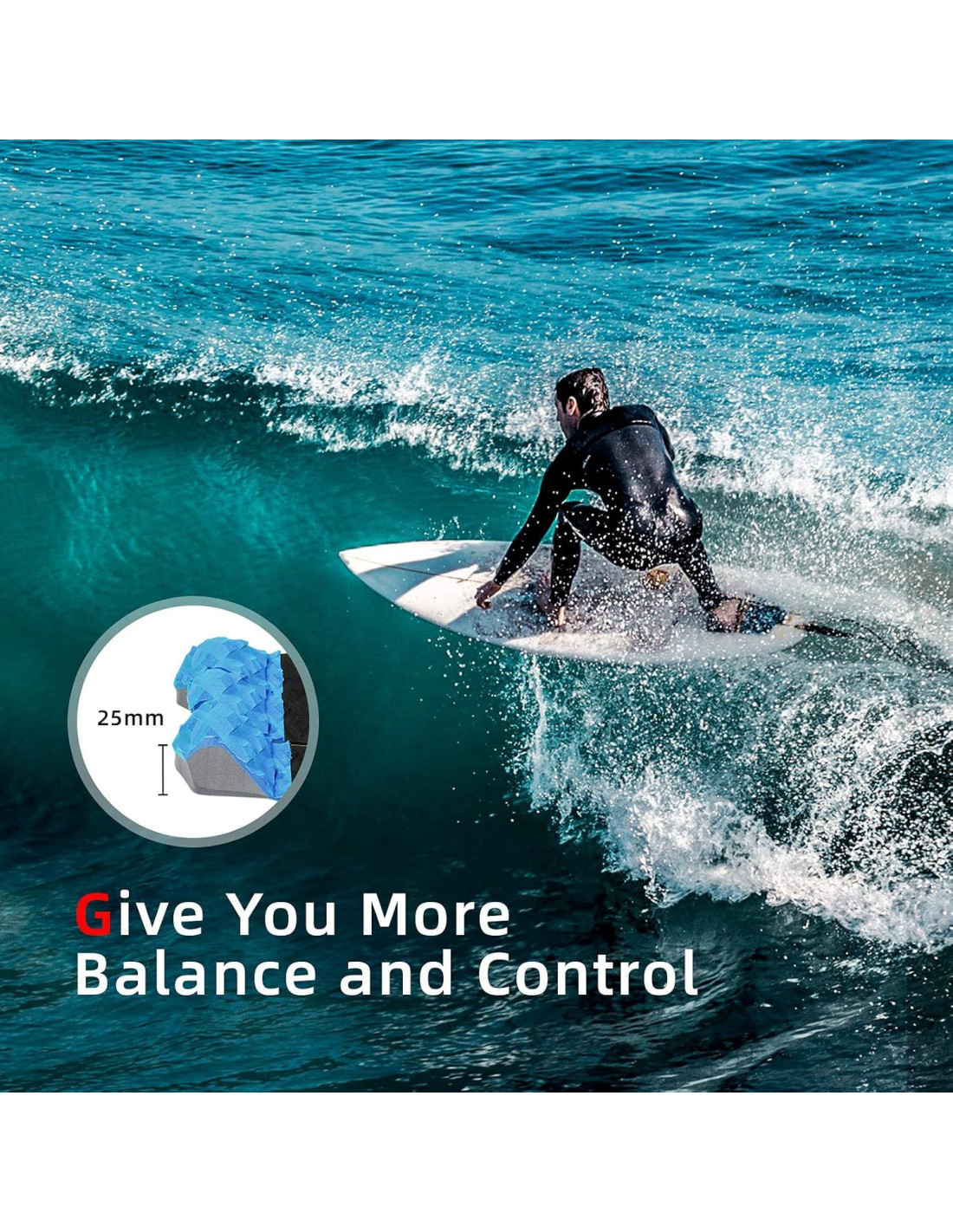 - Suave y Excelente Agarre: La espuma EVA de diamante ultraligera es suave y cómoda para estar de pie. También mantiene una tracción texturizada para tus pies, lo suficientemente fuerte como para proporcionar el soporte necesario para todos los movimientos en el surf.
