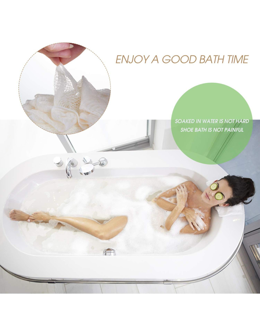 - 2 en 1 Diseño---Mitón de Baño + Esponja de Lufa. La lufa premium crea una gran espuma para limpiar el cuerpo. Fácil de colgar con un lindo cordón.