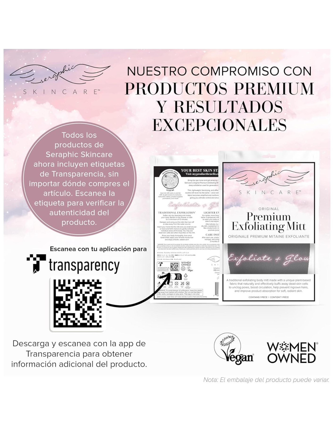 - Disfruta de una Experiencia de Spa en Casa - En Seraphic Skincare, estamos comprometidos a ofrecer productos exfoliantes premium a precios asequibles. Te invitamos a sumergirte en la lujosa experiencia de exfoliación y autocuidado en casa añadiendo nuestros mitones exfoliantes al estilo coreano a tu rutina de belleza para ese brillo con el que has estado soñando!