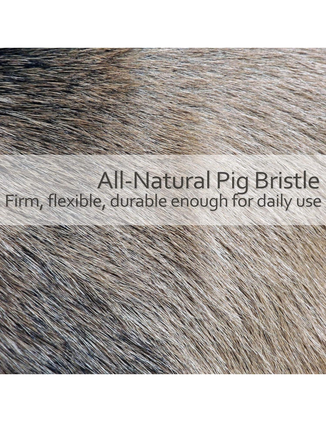 - DETALLES Y DIMENSIONES - Hecho a mano de madera de haya aceitada y cerda de cerdo; el cepillo de masaje mide 3-7/8-pulgadas (9,84 cm) de largo