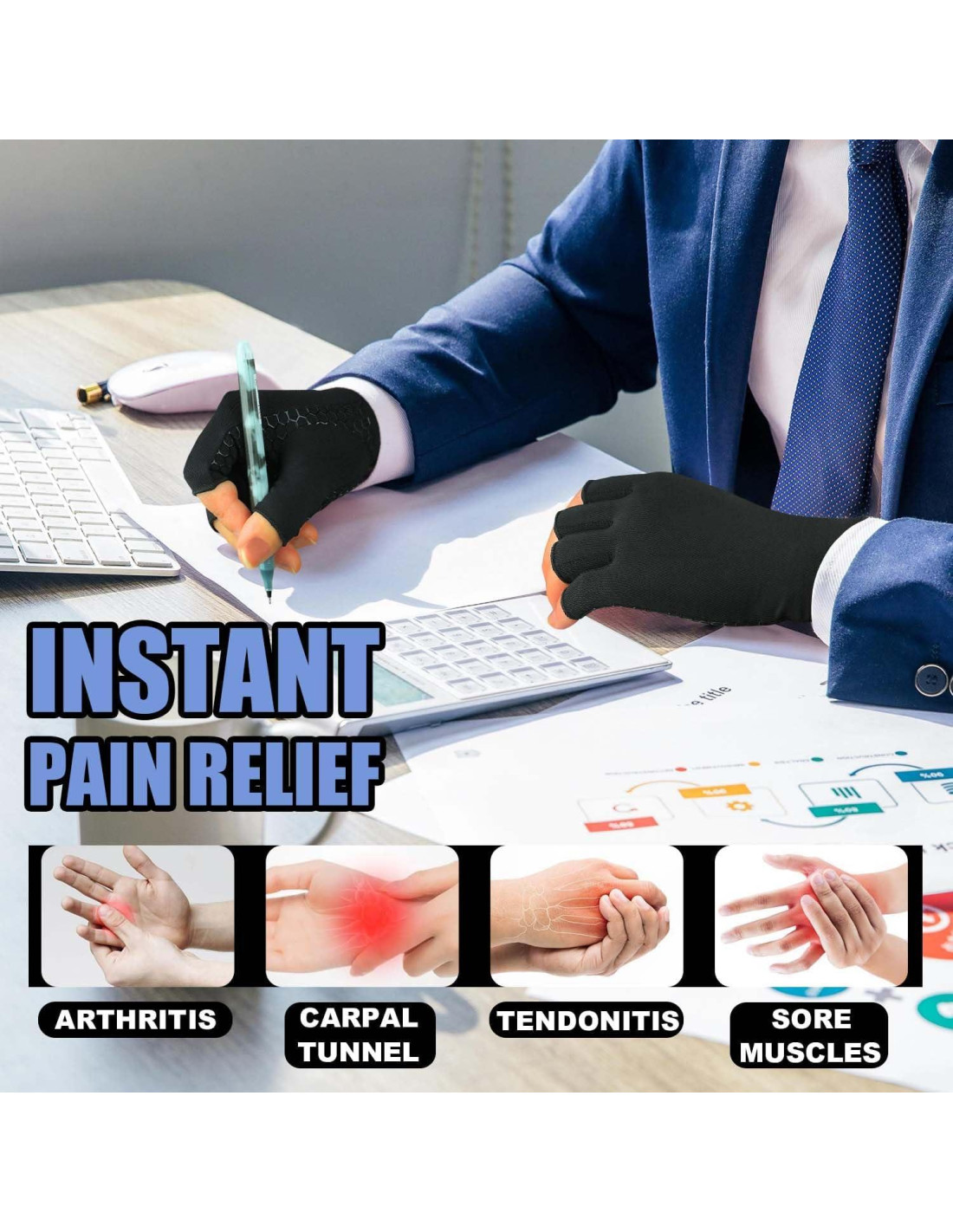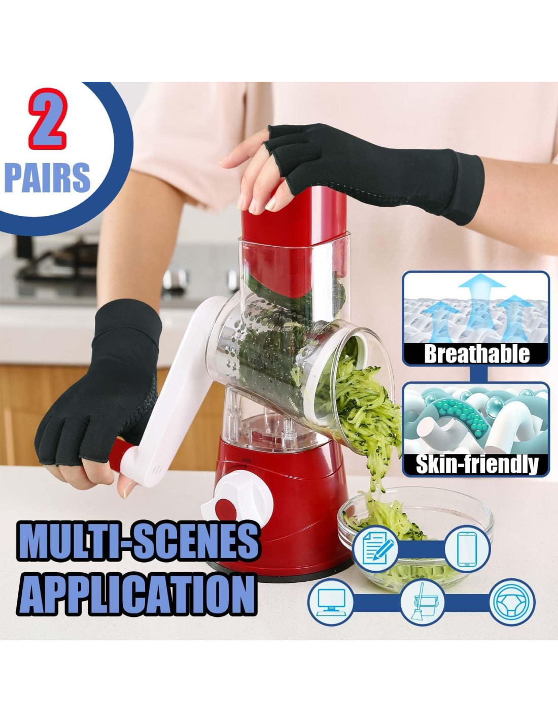 Proporcionando soporte para tus tendones, músculos y articulaciones al reducir la presión en los puntos de presión. Proporcionando soporte para la mano mientras se mantiene la flexibilidad y el rango de movimiento. Alivia el dolor y la incomodidad en las manos, ideal para artritis, túnel carpiano y todo tipo de dolor en las manos. La tela suave y transpirable mantiene tus manos frescas y cómodas para usar todo el día. Equilibrando el soporte de compresión y la flexibilidad, permitiéndote completar fácilmente tu trabajo diario. Costuras mínimas para reducir la irritación y maximizar la comodidad. La tela que absorbe la humedad y es flexible hace que estos guantes para el alivio del dolor de artritis mantengan tus manos frescas y cómodas. Ayuda a recoger fácilmente cosas resbaladizas. Fortaleciendo el agarre de las manos para hacer ejercicio, escribir, cocinar, hacer tareas del hogar, etc. Los materiales elásticos aseguran un ajuste ceñido para los guantes en tus manos, proporcionando soporte óptimo sin restringir el movimiento.
