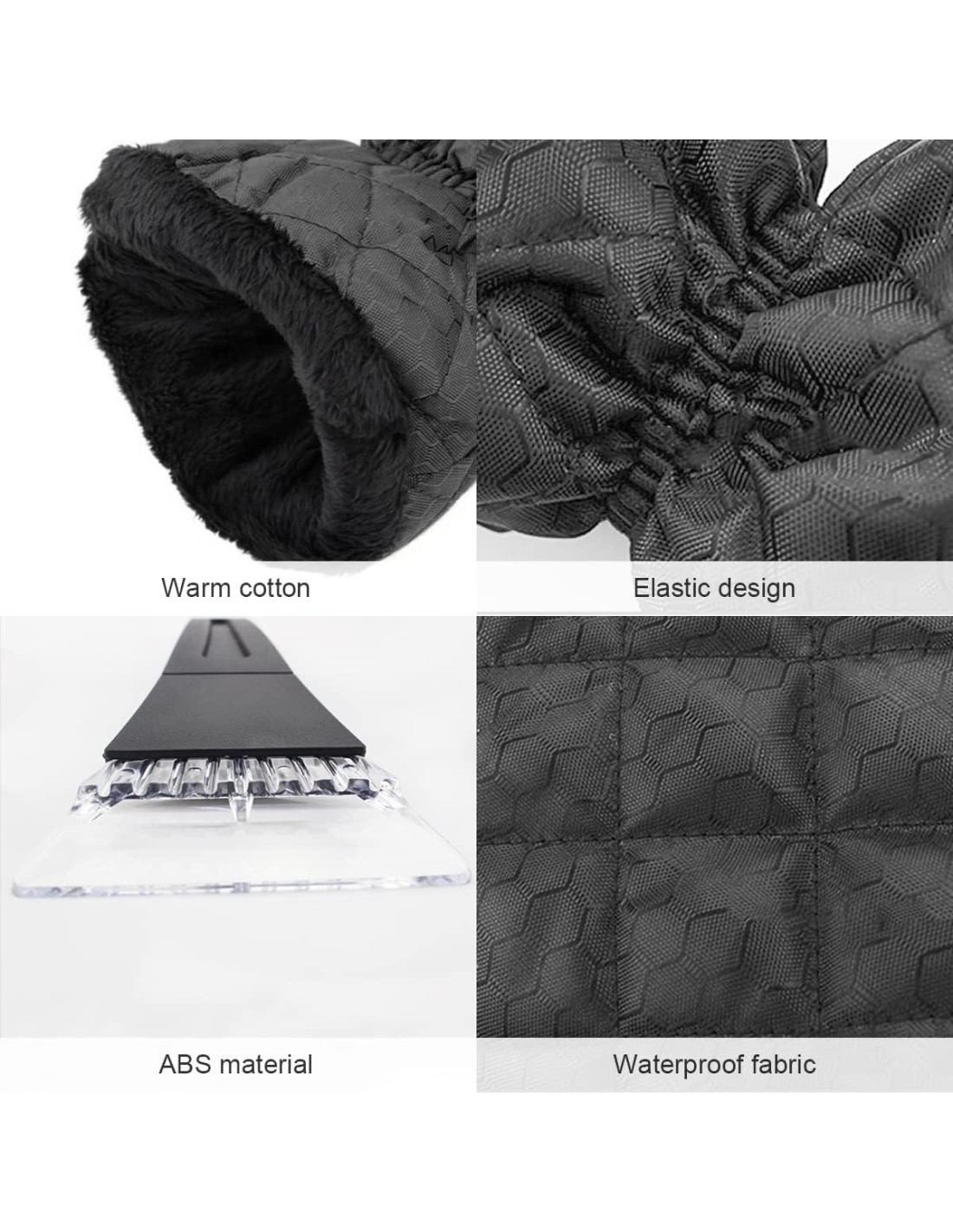- [MITÓN RASPADOR DE HIELO DE ALTA CALIDAD] Forrado con lana gruesa y suave por dentro y el exterior está hecho de tela Oxford, muy duradero, la muñequera de los guantes tiene una banda elástica para mantener el calor y evitar que entre el frío.