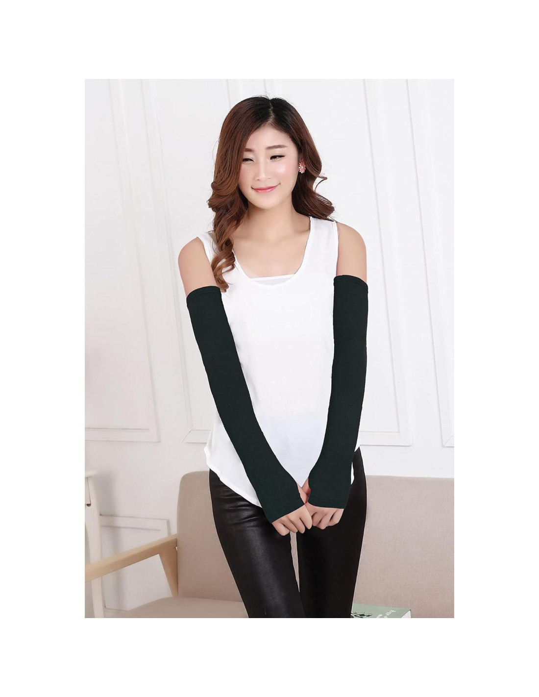 - Materiales y tamaño de los guantes largos sin dedos: 90% modal y 10% algodón; aproximadamente 48 cm de largo, puede estirarse hasta 60 cm, la parte superior aproximadamente 22 cm, el estiramiento máximo es de 30 cm. Mangas de brazo elásticas para mujeres que cubrirán la mano y el brazo.