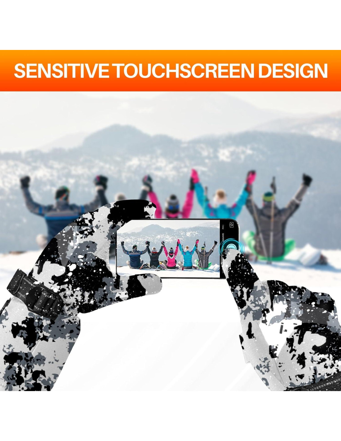 - [Diseño a Prueba de Agua y Viento con Pantalla Táctil Completa] Pantalla táctil de dedos completos para uso de dispositivos en invierno sin quitarse los guantes. Tejido impermeable de doble capa protege contra la lluvia y la nieve, con correas de muñeca ajustables dobles que previenen la intrusión del viento frío. La superficie del guante y el bolsillo de la batería están diseñados para ser impermeables y a prueba de viento. Mantén tus manos secas y calientes mientras esquías, montas en motocicleta, trabajas, cazas, haces senderismo, andas en bicicleta y otros deportes.