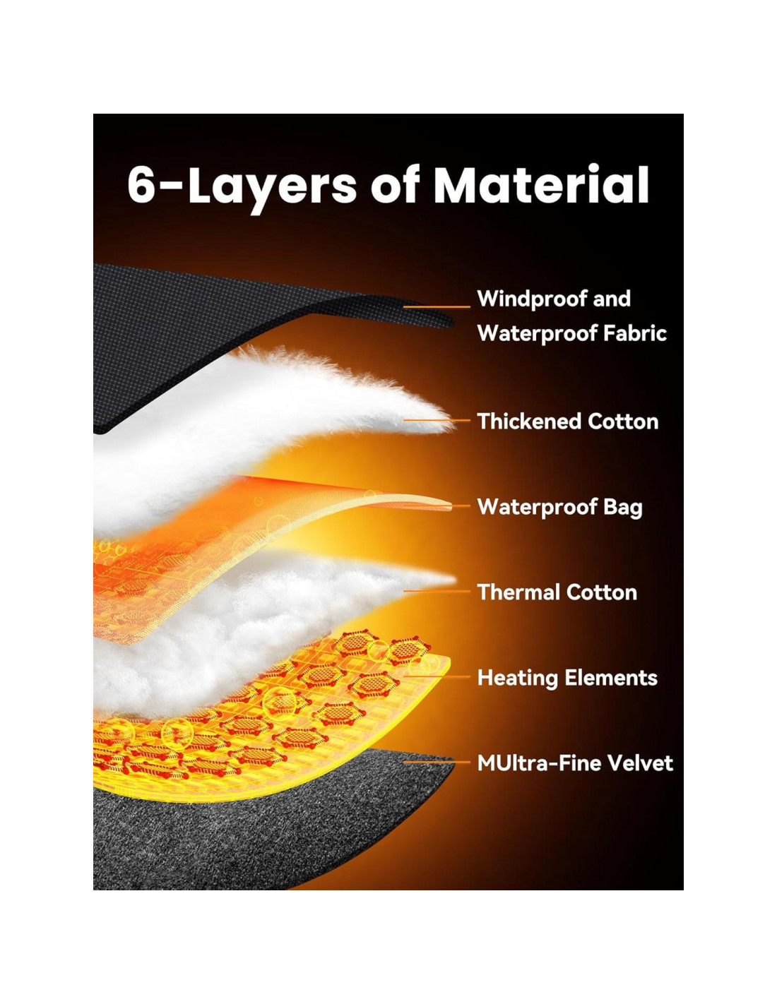 • [Impermeables, a Prueba de Viento y Transpirables] La construcción de seis capas reduce efectivamente la circulación de aire y aísla el aire frío, asegurando una retención de calor superior. El interior está forrado con algodón y terciopelo, proporcionando una sensación super cálida y suave.