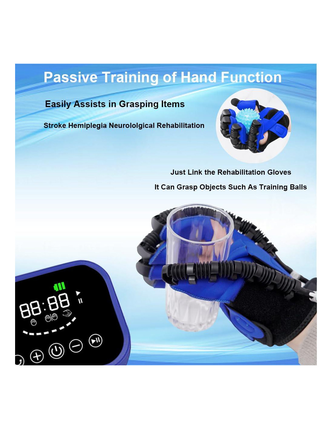 - Múltiples Modos: Múltiples modos requeridos para el entrenamiento de rehabilitación, modo de entrenamiento de un solo dedo, modo pasivo y modo espejo, para que las manos bien entrenadas puedan aprender los movimientos de otras manos. Puedes ajustar la intensidad según tu situación específica, no importa cuánta intensidad puedas ajustar, dentro de un rango seguro, no te preocupes por la intensidad.