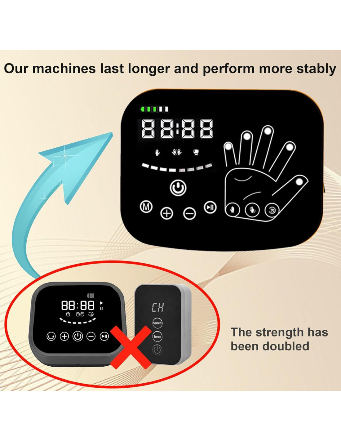 - Fácil Operación con Pantalla LED, Múltiples Mejoras y Diseño Amigable. Los guantes robóticos cuentan con una pantalla LED intuitiva, todos los ajustes son fácilmente ajustables. El guante presenta múltiples mejoras, incluida la capacidad de guardar el último modo de entrenamiento y restaurar la configuración de fábrica. Estas mejoras hacen que el guante sea fácil de usar. ¿Desea una solución efectiva y conveniente en casa para ayudar con la rehabilitación de la mano? ¡nuestro guante robótico de rehabilitación es la elección perfecta en su camino hacia la recuperación!