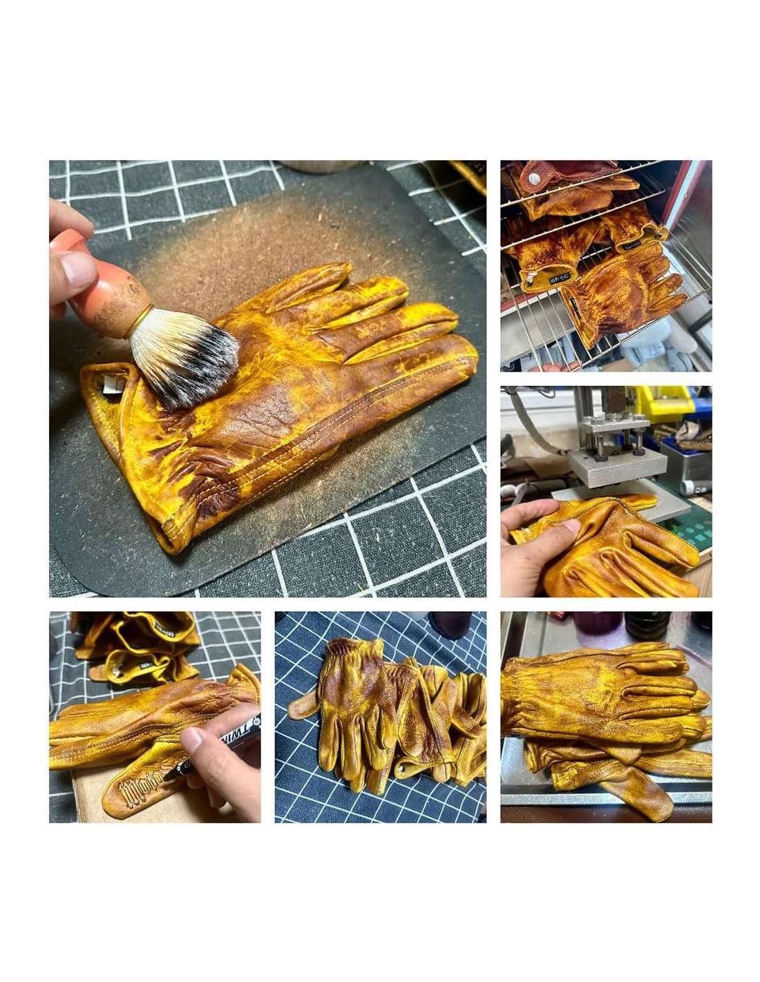 - Sobre nuestros guantes: Somos una empresa que se especializa en guantes vintage hechos a mano, con cada paso siendo hecho a mano. El cuero está hecho de la capa superior del cuero de yak de meseta, que tiene cicatrices naturales y una sensación muy retro. También se ve muy único. Cada par de guantes es una obra de arte, y usarlos regularmente dará una sensación retro más detallada. Nuestro propietario de la tienda ha estado usando nuestros propios guantes diseñados durante 2 años, y ahora el efecto retro es muy genial, así que atesora cada par de guantes