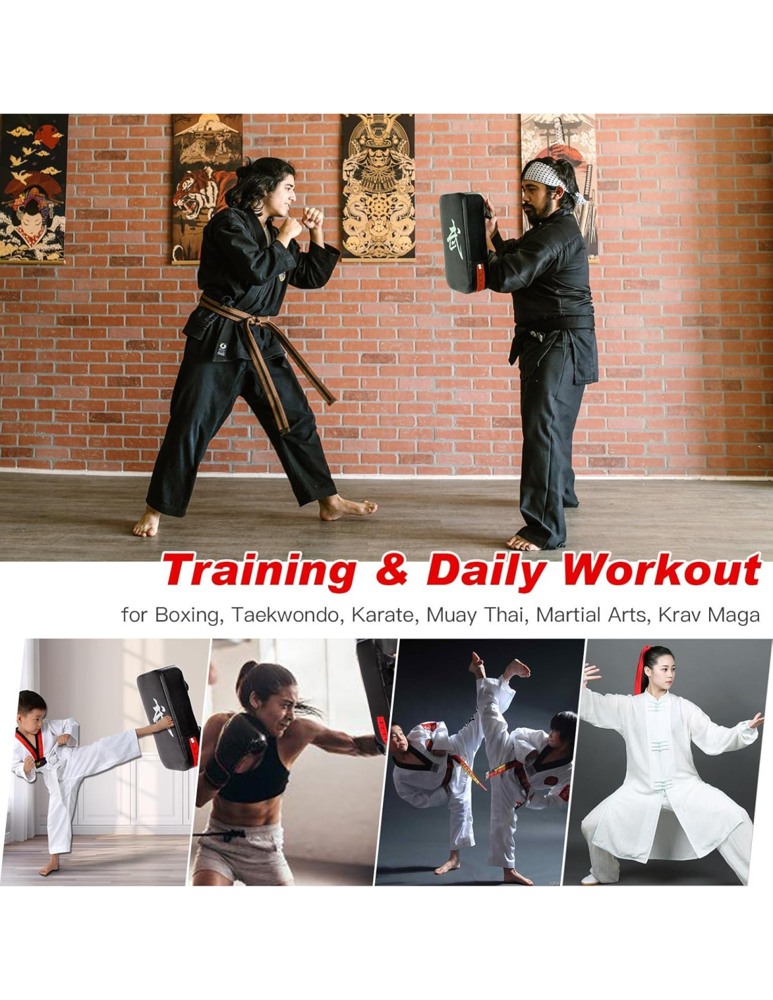 - Protector de Patadas de Boxeo: Con un área de superficie más grande de 39.37cm x 20.07cm x 9.4cm, el protector de patadas de Muay Thai está hecho de cuero PU mejorado y esponja gruesa en el interior, lo que es lo suficientemente cómodo y seguro para absorber golpes fuertes.