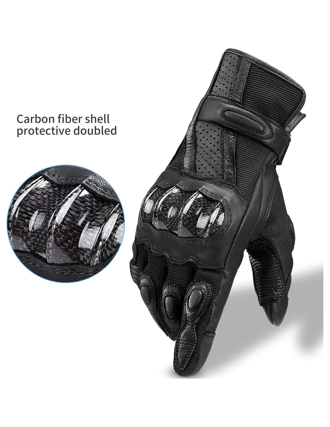 - [Diseño anti-impacto y antideslizante] La fibra de carbono en la palma te aleja de los impactos. Además, el silicón antideslizante en la palma te ayuda a sostener mejor tu moto.