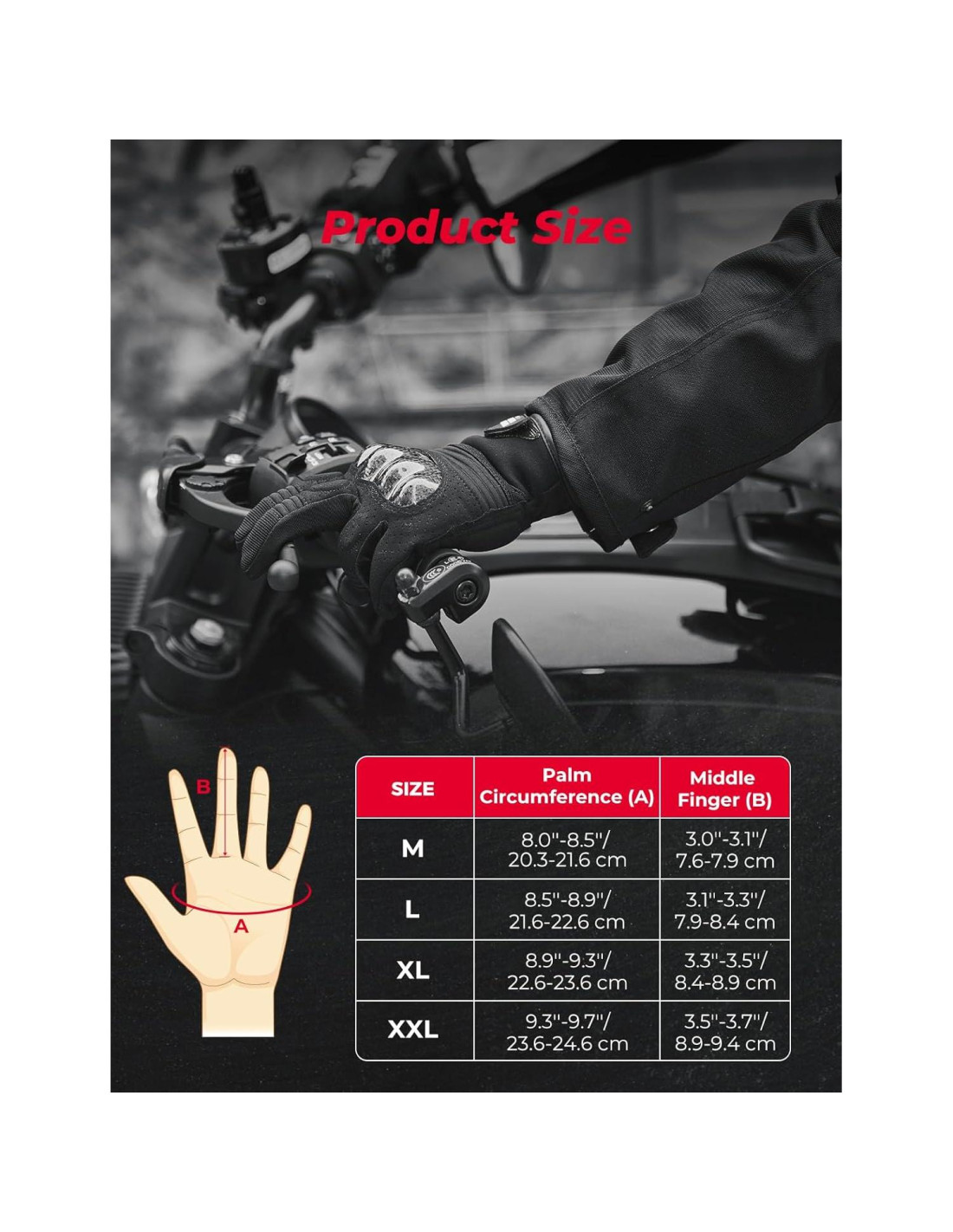 - Protección mejorada en el dorso para paseos más seguros: Nuestros guantes de motocicleta cuentan con una carcasa protectora duradera en el dorso, proporcionando una resistencia al impacto excepcional. Ya sea en la carretera o en terrenos difíciles, estos guantes aseguran que tus manos permanezcan a salvo de impactos inesperados.