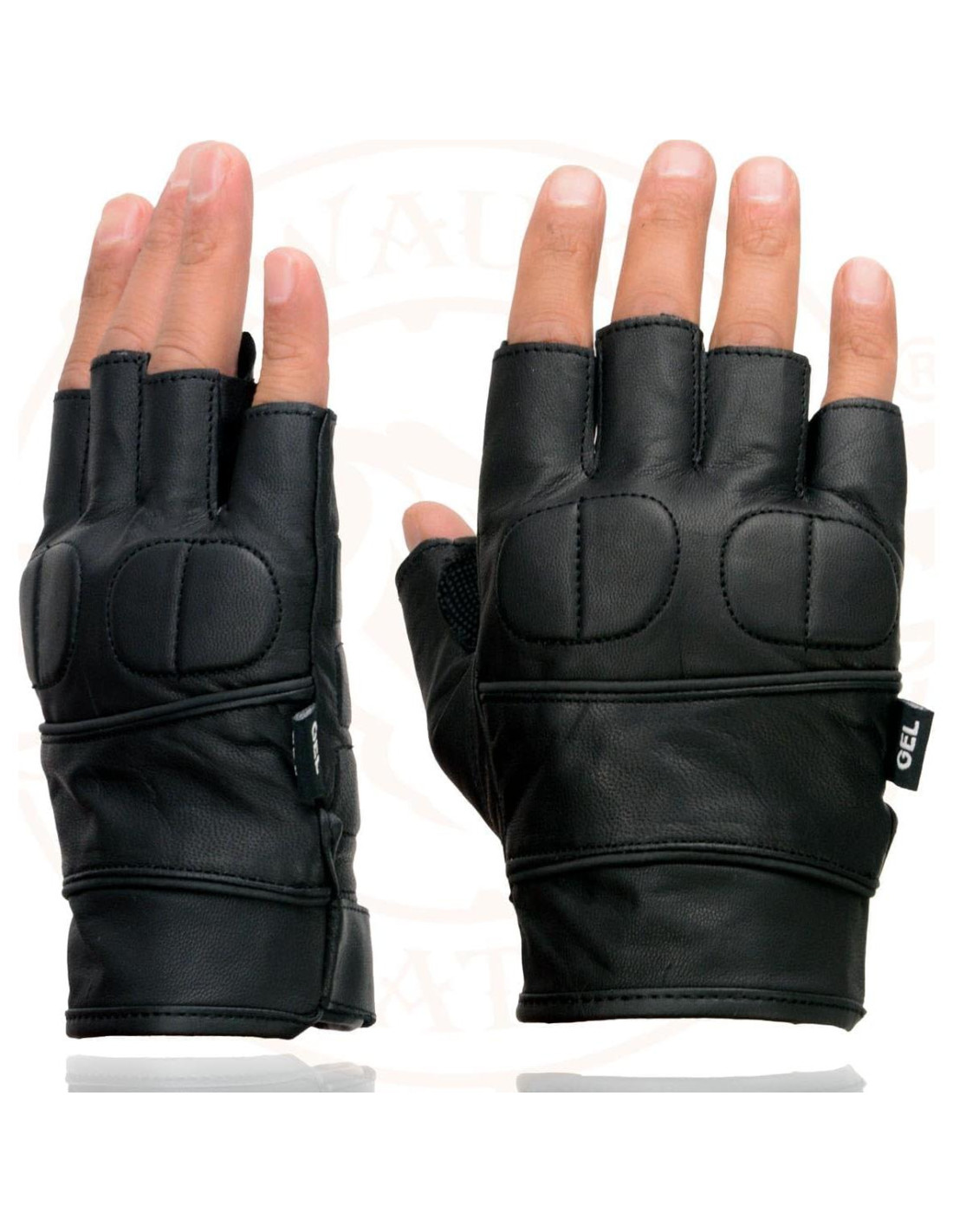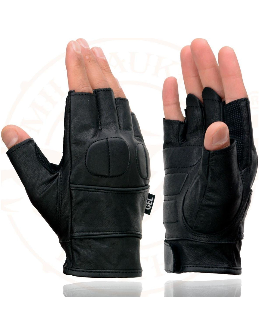 Guantes de Cuero Negro sin Dedos para Hombre Milwaukee Leather SH462 con Palma de Gel Características Hechos de Cuero Premium Liviano y Ligeramente Acolchados Cierre de Correa Ajustable en la Muñeca Protección de Nudillos Acolchada Dedos que Mejoran el Agarre Palma de Gel - (Menos Vibración y Comodidad al Conducir)