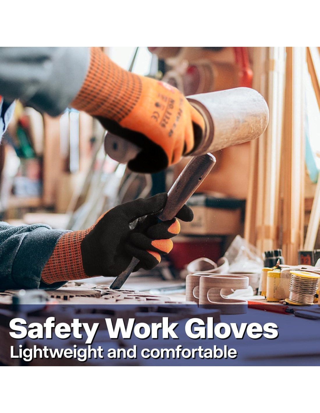 - Superior en resistencia a la abrasión y duraderos Estos guantes de trabajo para hombres cuentan con un recubrimiento de nitrilo arenoso conocido por su excepcional resistencia a la abrasión y capacidades antideslizantes, asegurando un excelente agarre incluso en condiciones húmedas y grasosas. Con crotches de pulgar reforzados, ofrecen una durabilidad diez veces más fuerte que los guantes resistentes a cortes de nivel 5 ordinarios, lo que los convierte en la opción ideal para diversos entornos de trabajo