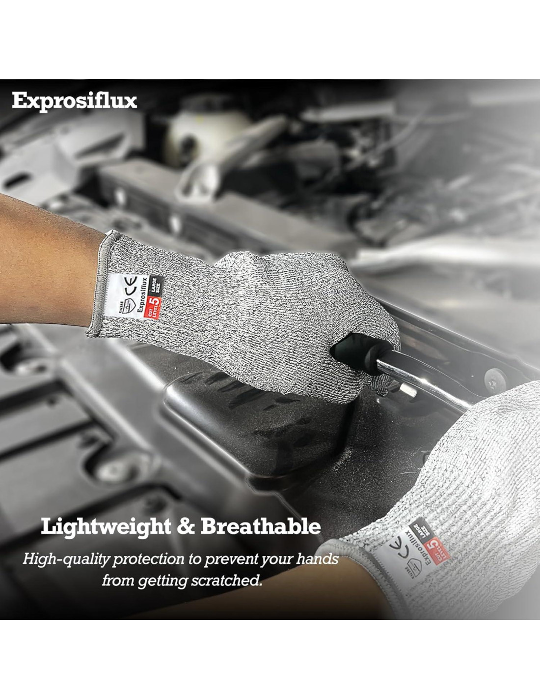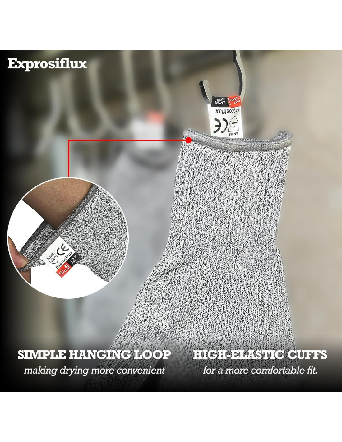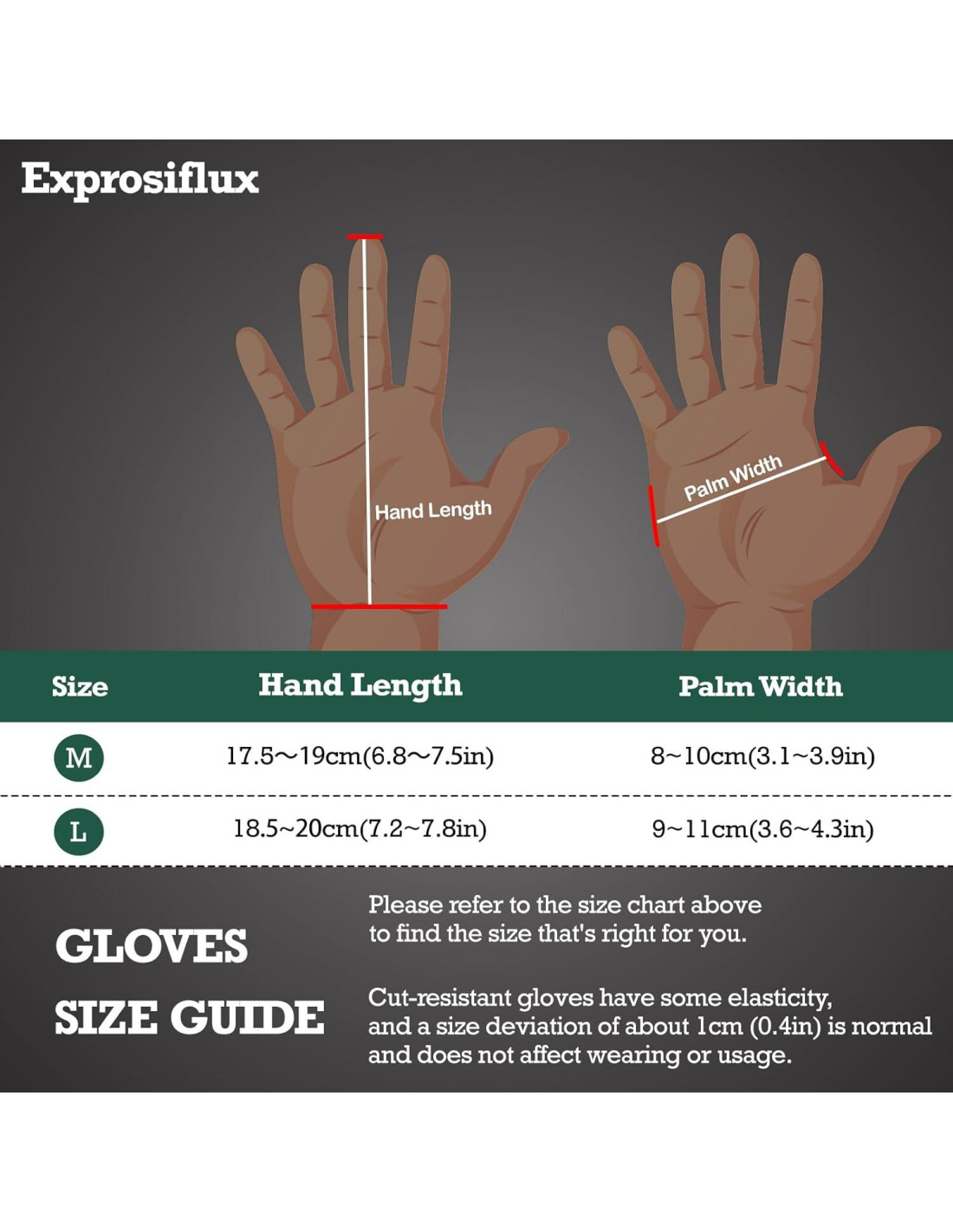 - Componentes incluidos: 2 Pares de Guantes Resistentes a Cortes (4 piezas), Una bolsa de empaque de guantes de la marca Exprosiflux