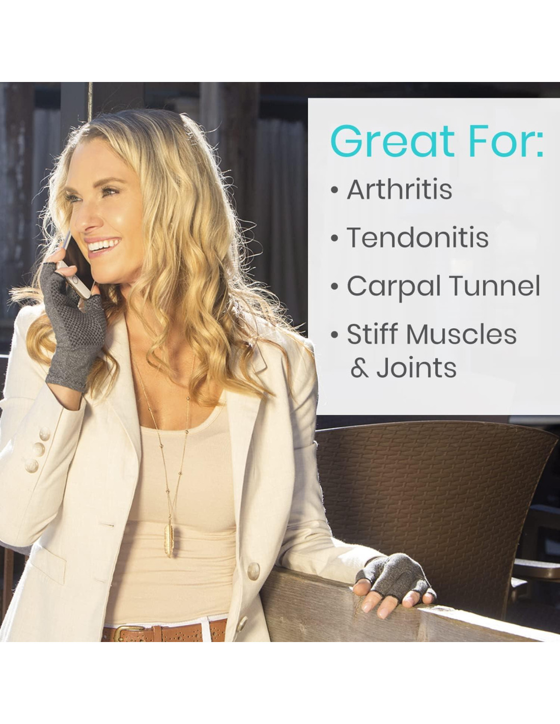 - ALIVIO EFECTIVO DE ARTRITIS Y SÍNDROME DEL TUNEL CARPIANO: Proporcionando terapia de compresión y soporte suave, los guantes de artritis texturizados de Vive están hechos con una mezcla de algodón y spandex de primera calidad que se adapta a la forma natural de tu mano y permite completa movilidad de los dedos y el pulgar. Los guantes de compresión ligeros y sin dedos alivian el dolor de artritis al reducir la presión en los puntos dolorosos mientras alivian los músculos, tendones y articulaciones adoloridos y rígidos.