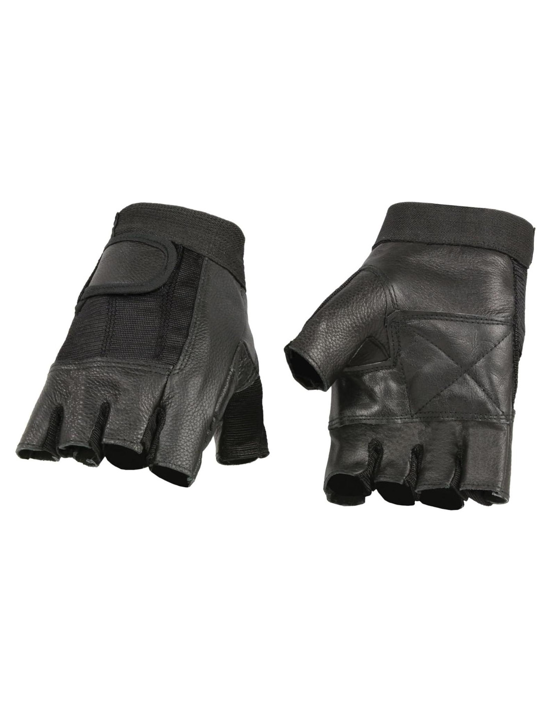 Guantes sin dedos de cuero y malla negra para hombre Milwaukee Leather SH217