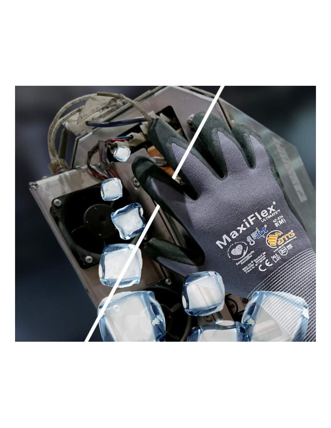 Guantes de nylon tejidos sin costura MaxiFlex 34-874 con agarre de micro-espuma recubierto de nitrilo en la palma y dedos. Diseñados y desarrollados como un guante transpirable, MaxiFlex Ultimate se ha convertido en el estándar para el manejo de precisión en entornos secos. Transpirabilidad 360 - El recubrimiento de nitrilo de micro-espuma patentado ofrece 360 de transpirabilidad, lo que lo convierte en el guante más transpirable del mercado hoy en día. Tecnología de Tejido utilizada para producir puntas de dedos suaves y redondeadas, mejorando la sensibilidad de los dedos. Características y Especificaciones: Muñeca Tejida ayuda a prevenir que la suciedad y los desechos entren en el guante 100% Libre de Silicona 25% Más delgado que la mayoría de los guantes de nitrilo de espuma en el mercado, ofreciendo el doble de rendimiento mecánico Forma, Ajuste y Sensación - Imita la "mano en reposo", reduciendo la fatiga de la mano y aumentando la comodidad. Penetración Consistente del Forro del nitrilo, dejando solo el forro suave en contacto con la piel. Agarre Optimizado, el acabado de micro-taza permite un agarre controlado. Este guante ha sido lavado antes del empaque final, haciéndolo limpio y seguro para su uso.