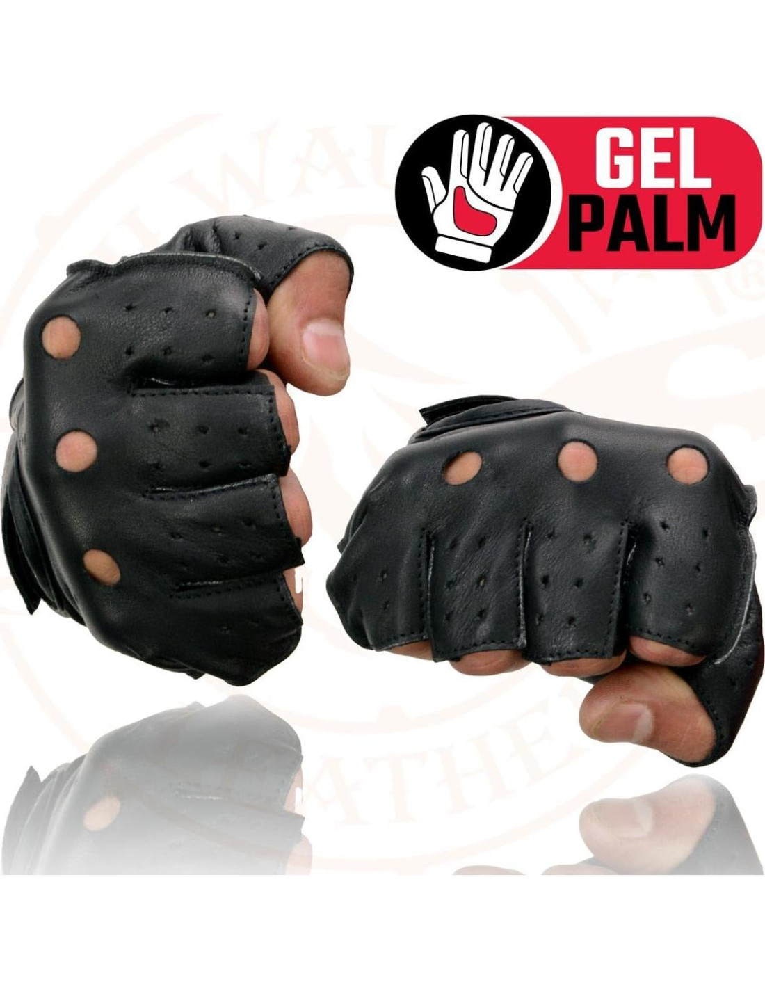 Guantes sin dedos de cuero de grado premium para hombres Milwaukee Leather con acolchado de gel y agujeros para nudillos