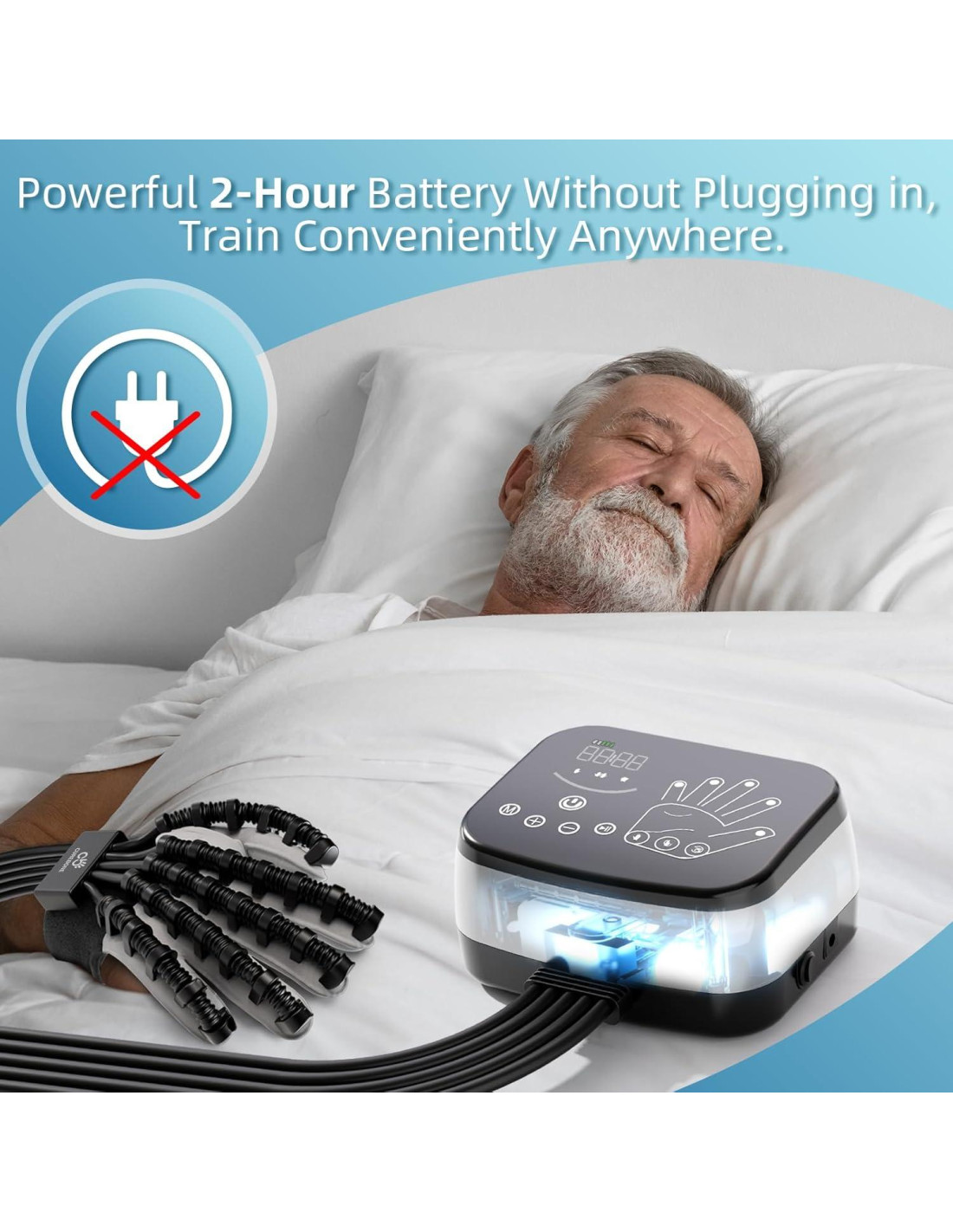 - [Ejercita Tus Dedos En Movimiento] : Nuestro guante robótico de recuperación de dedos permite el uso inalámbrico del entrenador de mano. Carga el guante de golpe una vez y úsalo durante 3 horas. Realiza ejercicios de mano en cualquier lugar