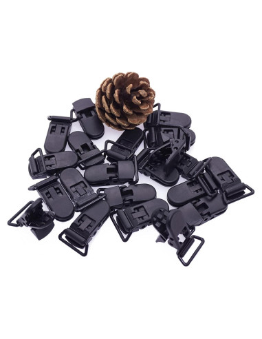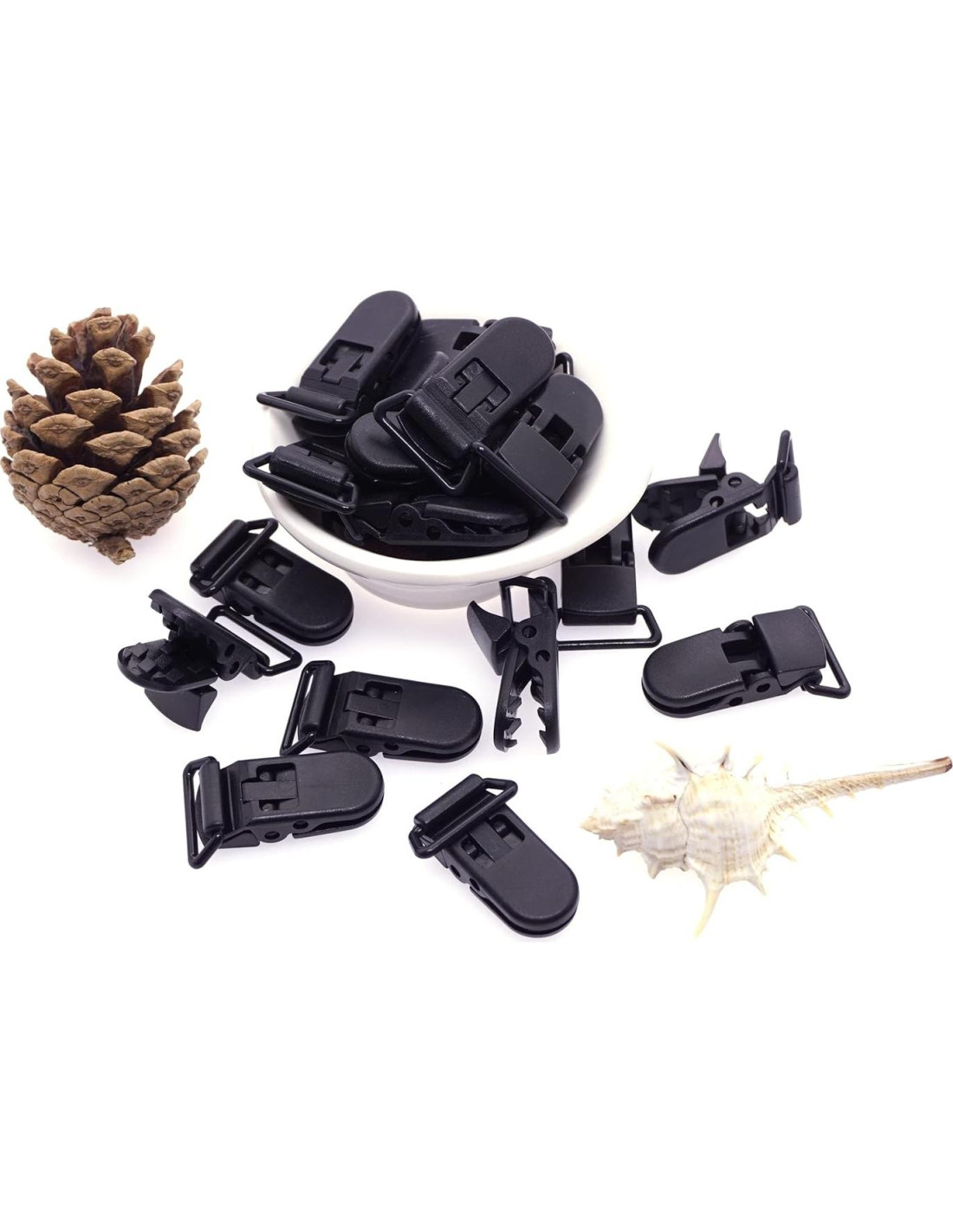 - Paquete: Viene con 25pcs clips de chupete de plástico negro en un paquete