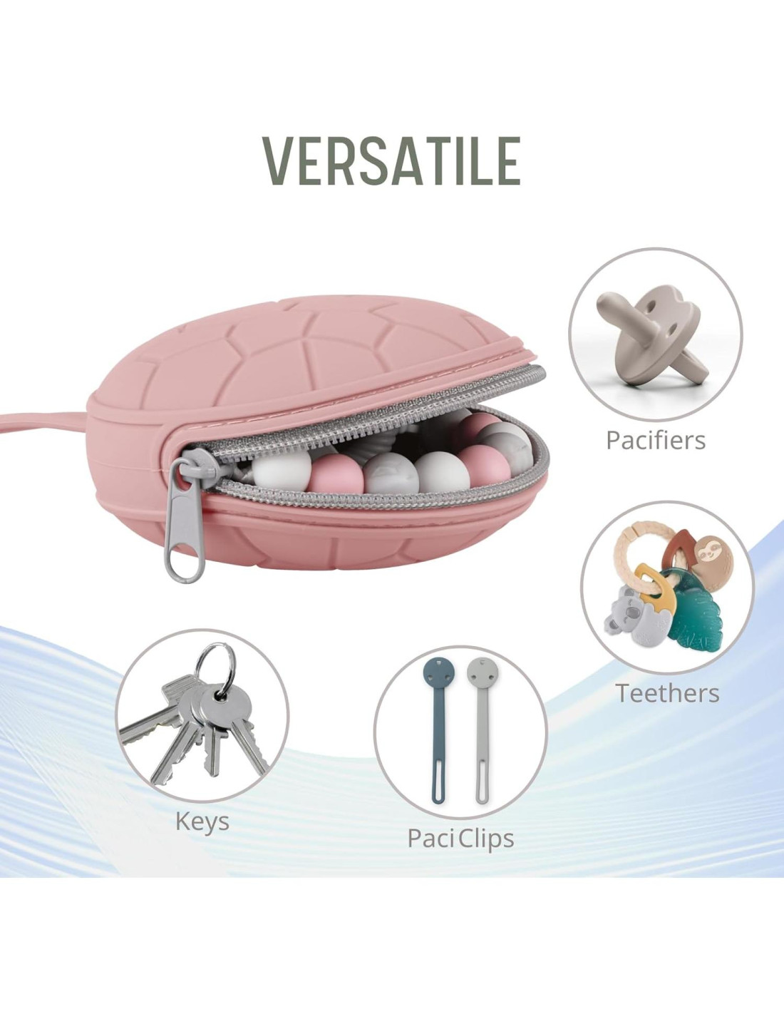 - Funda de Chupete Segura y Versátil: Fácil con múltiples usos que es lo suficientemente grande para varios chupetes de su hijo, juguetes mordedores, bocadillos, o su almacenamiento personal de monedas, bálsamo labial, desinfectante o llaves.