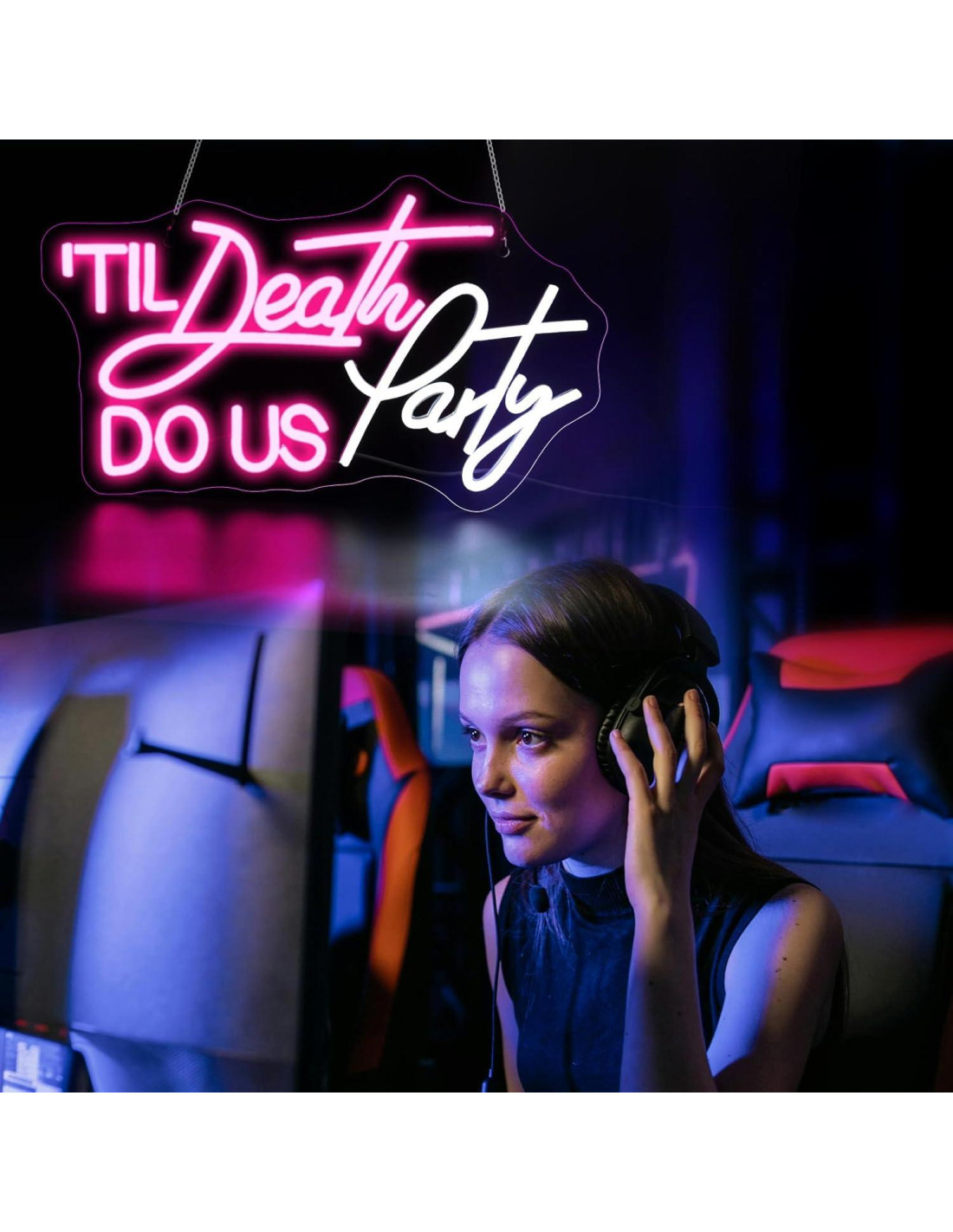 - ¡Despierta tu Joie De Vivre! : Transmite una actitud hacia la vida y crea una atmósfera cómoda y agradable con estas señales de neón. La señal de neón Til Death Do Us Party es adecuada para decorar la mayoría de las ocasiones. Perfecta para decorar tu sala de estar, dormitorio o negocios, clubes, fiestas, bares, etc.