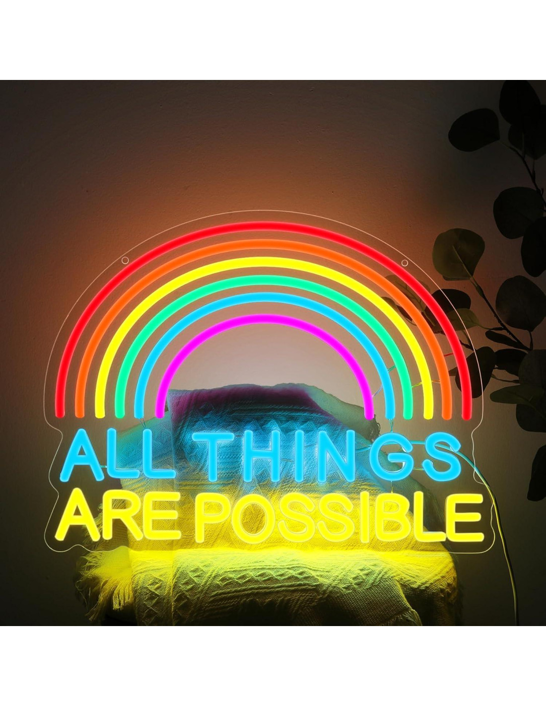 - DISEÑO ÚNICO: La señal de neón todo es posible tiene un diseño elegante y es una decoración de arcoíris perfecta o regalo de boda, las señales de neón son para la sala de estar, puerta, oficina, señales LED para la habitación.