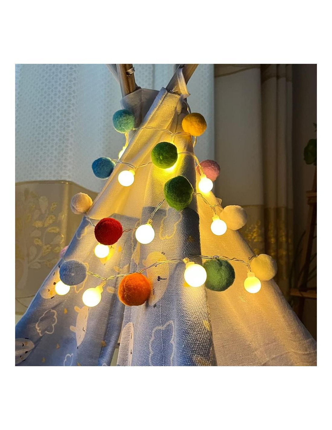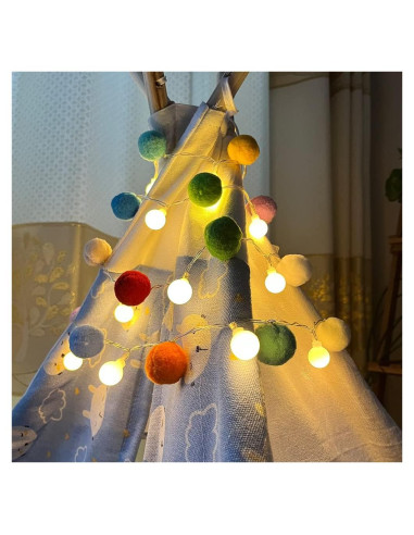 - LUCES DE BOLITAS POMPOM: Lindas y simples luces de cadena de 2 metros (6.56 pies) con 20 bolas de pompón y 20 luces de bola blanca cálida de plástico, crean un ambiente acogedor y romántico, añadiendo un toque especial a tu decoración.