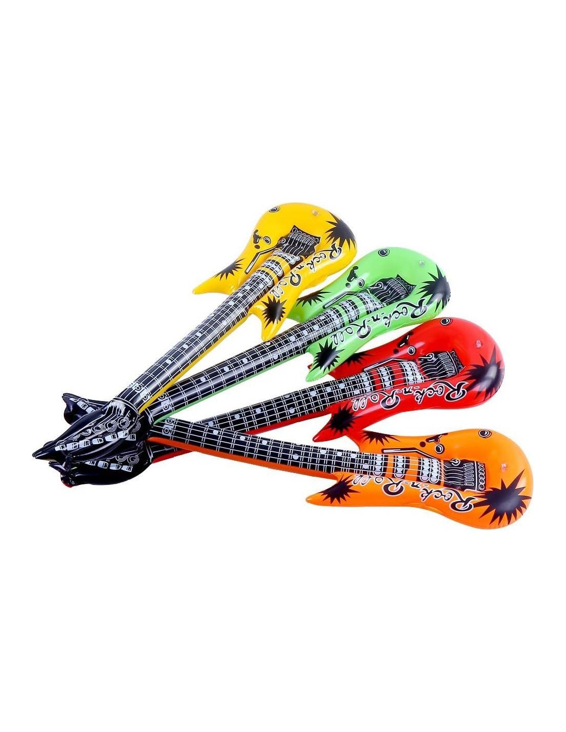 Rojo, rosa, naranja, amarillo, verde, azul, enviados al azar, vibrantes y brillantes. La guitarra inflable se puede usar para la playa, juguetes acuáticos, accesorios de escenario de conciertos, accesorios para actuaciones infantiles, ¡un gran éxito para tus eventos especiales! Ideal para fiesta de rock star, regalos para niños, fiesta de cumpleaños, ceremonia de boda, accesorios para sesiones de fotos y más, definitivamente una fuente de felicidad.