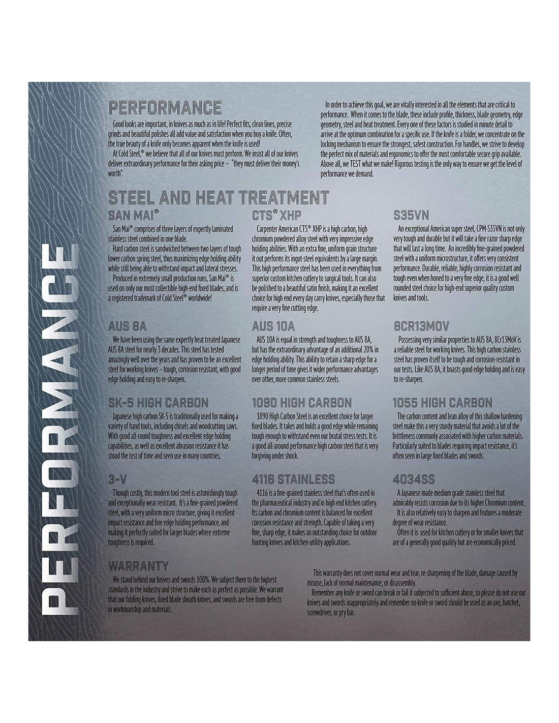 El Hacha Trail Boss Cold Steel es lo suficientemente compacta como para llevarla todo el día en la mano o atada a tu mochila, pero lo suficientemente resistente para tareas que harían que un hacha o un tomahawk pidieran clemencia. Con una cabeza de estilo europeo que tiene una hoja de 4" (10.16 cm) y un filo de 4 1/2" (11.43 cm), da un gran mordisco con cada golpe. Además, cuenta con un mango de nogal americano recto y muy resistente. En nuestras extensas pruebas de campo en el interior de Australia, el Trail Boss se utilizó para cortar leña, despejar caminos y senderos, construir refugios e incluso para talar un árbol de tamaño considerable. Peso de la cabeza: 1 lb 13 oz (0.85 kg) (no legal para NATF). Peso total: 2 lb 9.5 oz (1.17 kg).