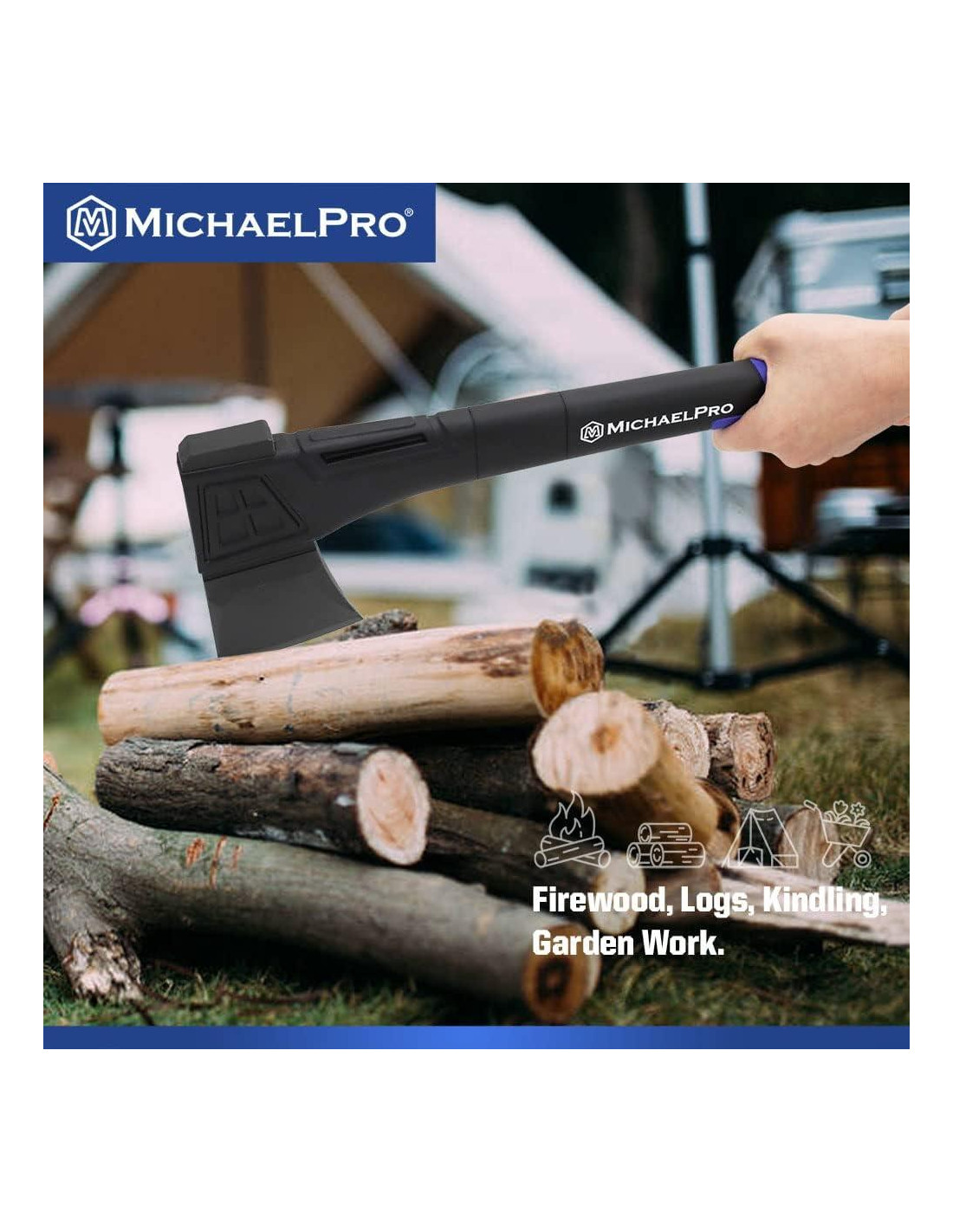 - [ALMACENAMIENTO SEGURO Y FÁCIL] La hoja y la cabeza del hacha están completamente alojadas en una funda protectora práctica para mayor seguridad, mejor almacenamiento y transporte.
