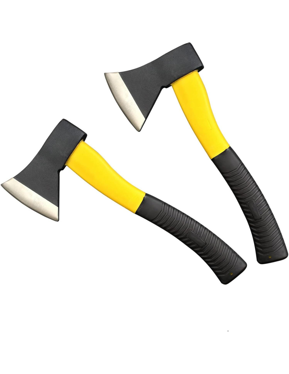 Juego de herramientas Drake off road de 2 hachas de camping presenta: hoja de 4" (10.16 cm) mango de fibra de vidrio de 12" (30.48 cm) longitud total de 14" (35.56 cm) los colores pueden variar mango de goma texturizado para acción antideslizante con contorno perfecto añade un 40% más de potencia de golpeo por diseño.