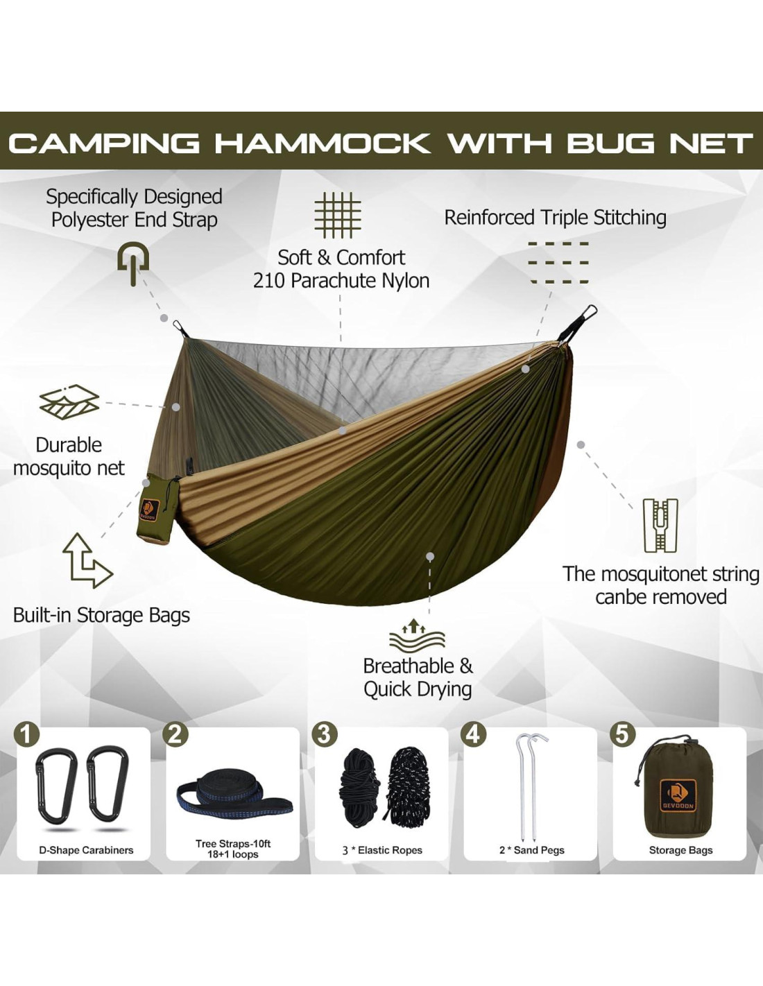 - Comodidad Máxima: Experimenta el epítome de la relajación con nuestra Hamaca Doble con Red para Mosquitos. Hecha con materiales premium, te acuna a ti y a tu pareja en un lujoso confort, permitiéndote relajarte y escapar del estrés de la vida diaria