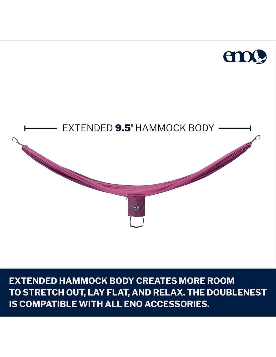 - Ligera: pesando solo 16 oz (0.45 kg), esta hamaca se pliega al tamaño de un pomelo en su bolsa de almacenamiento incorporada; fácil de llevar y almacenar; compatible con todas las correas y soportes de hamaca ENO