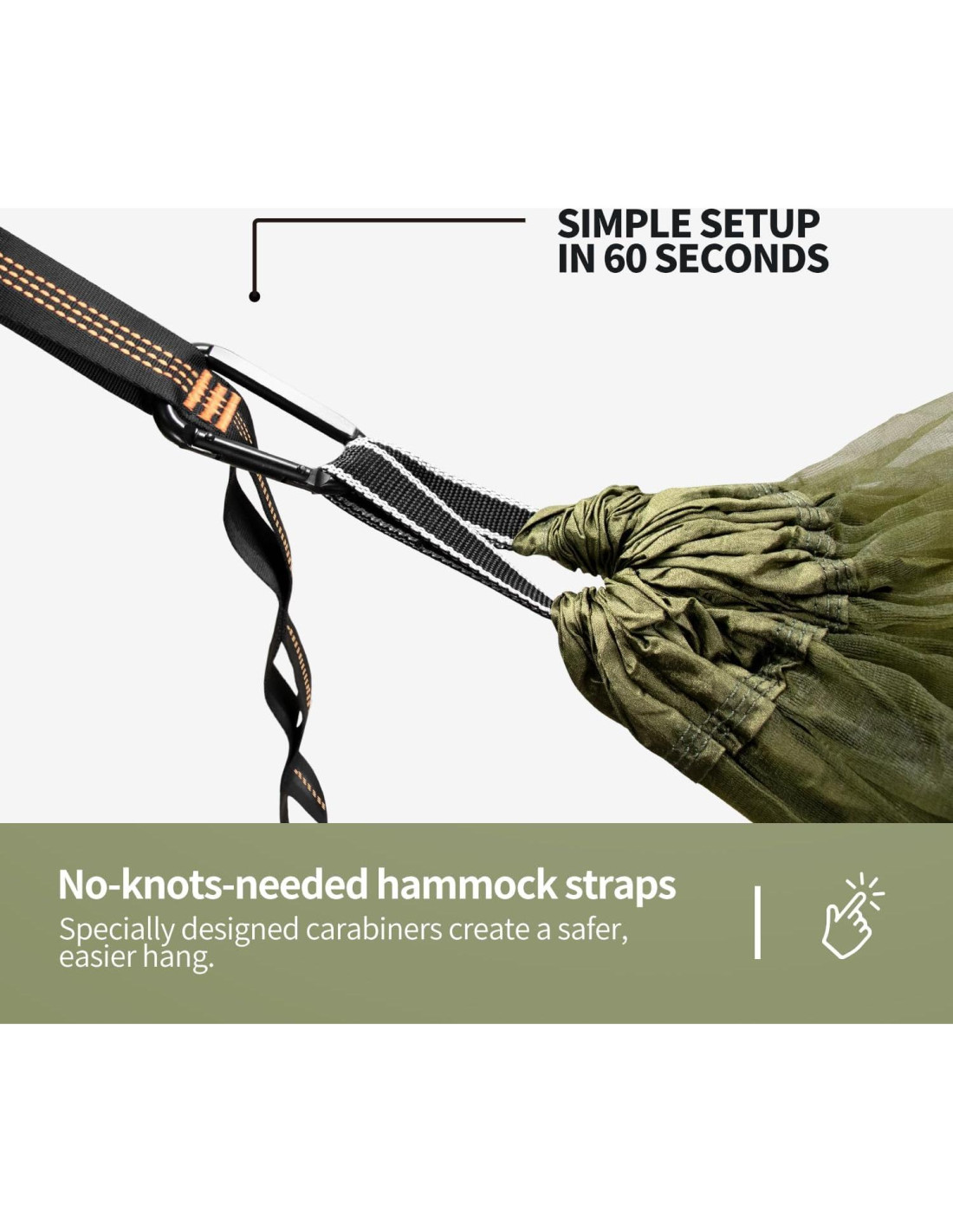 - Fácil de montar: El diseño de hamaca desplegable es fácil de montar. Con la correas gruesas para árboles y clips de carabinero sólidos colgando del árbol, puedes disfrutar de tu tiempo libre de inmediato. El zipper funciona suavemente y está bien colocado.