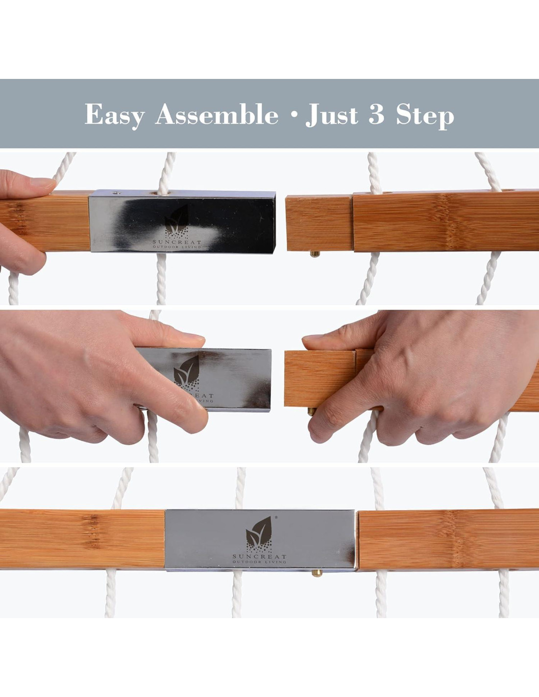 - Barra de Extensión Curvada y Fuerte: Barras de extensión de 139.7 cm con barniz marino para sellar que son elegantes y resistentes a la intemperie. Presenta agujeros de barra de extensión avellanados que reducen la fricción entre la cuerda y la barra de extensión. Gracias al diseño curvado, te dará una siesta cómoda sin temor a caer. Y la barra se puede desmontar para un fácil almacenamiento y transporte.