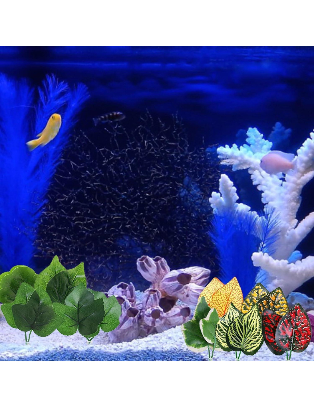 - Decoración de Plantas Acuáticas: Estas decoraciones para acuarios están diseñadas para complementar tus plantas acuáticas existentes, añadiendo interés visual y variedad a tu acuario. También pueden proporcionar lugares adicionales para esconderse y refugio para tu pez betta.