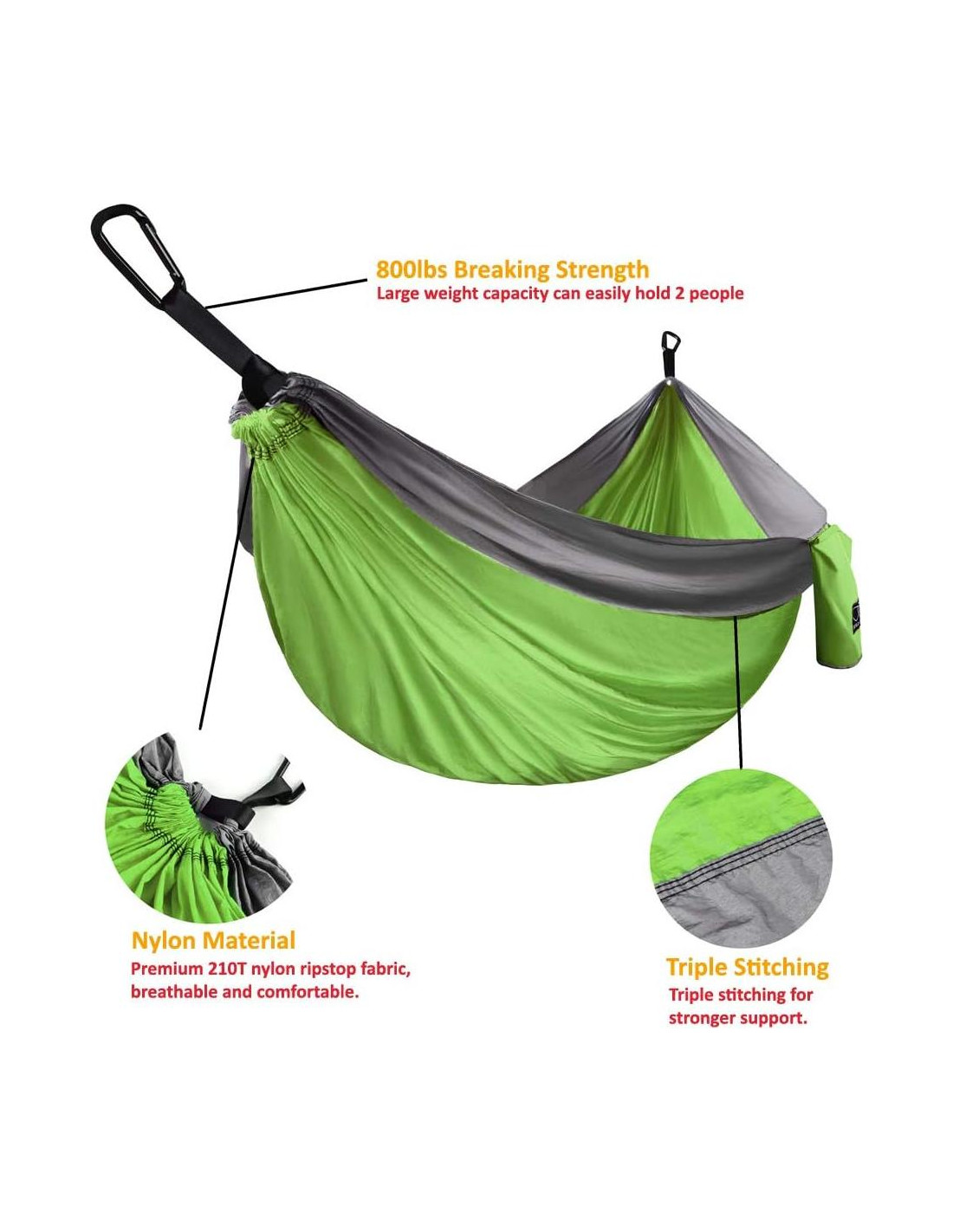 - Calidad Premium - Construida para durar toda la vida, nuestras hamacas de camping duraderas están fabricadas con nylon de paracaídas premium suave y resistente y costuras de triple entrelazado, junto con mosquetones de alta resistencia y correas para hamacas amigables con los árboles.