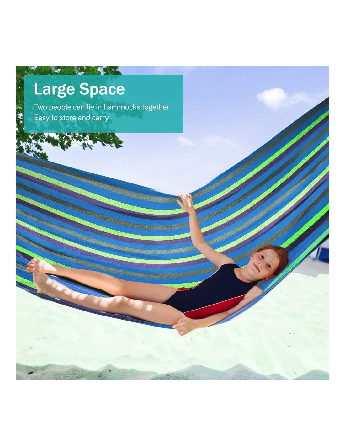 - [Hamaca Exterior Versátil] Ya sea que desees instalarla en tu jardín, patio, al lado de la piscina o llevarla a la playa, esta hamaca para exteriores es perfecta para varios momentos de relajación y ocio al aire libre. Ten en cuenta que el soporte no está incluido.