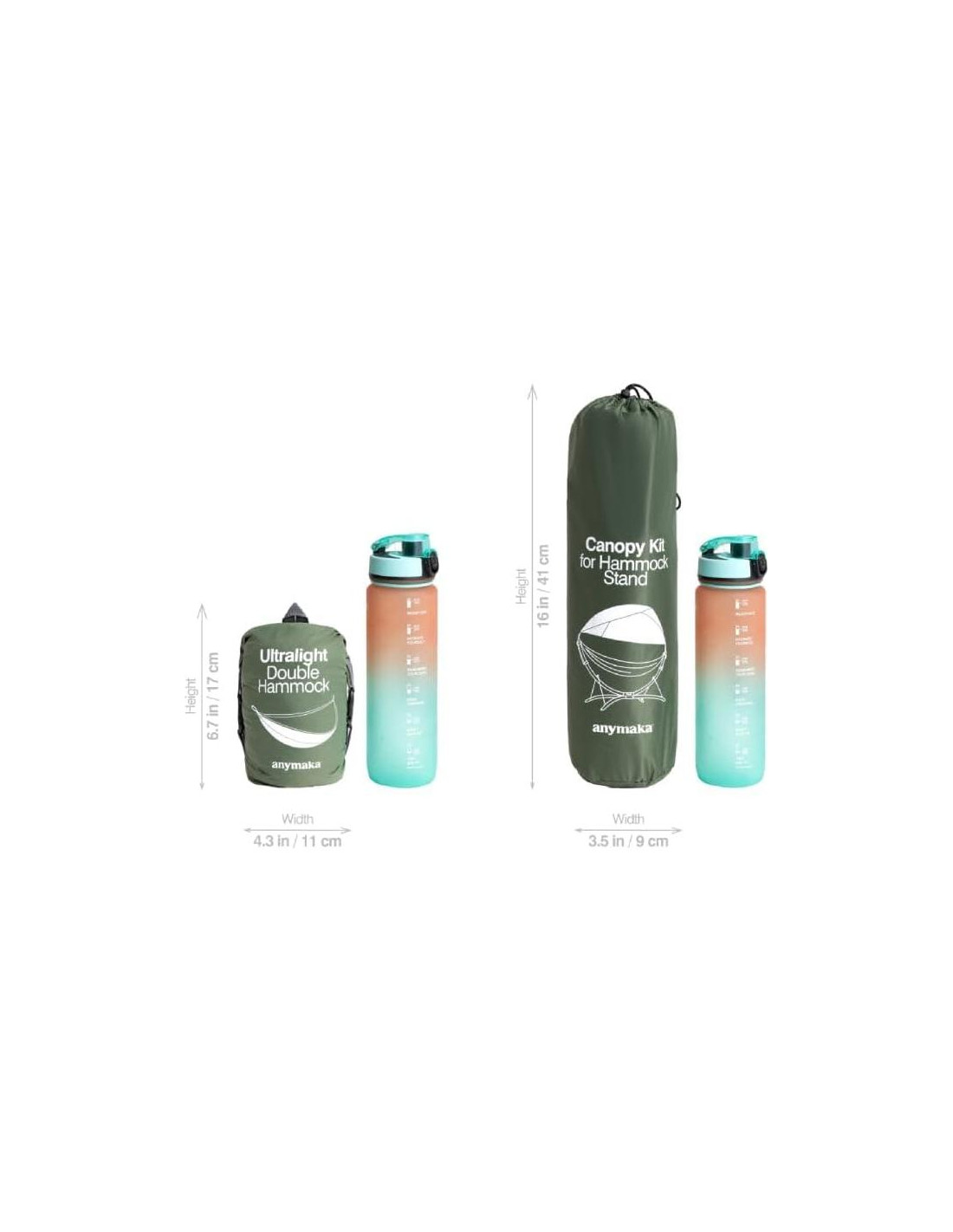 Relájate en cualquier lugar, hamacarse es fácil. Experimenta la máxima facilidad y libertad de relajación en hamacas sin árboles en cualquier lugar, en cualquier posición que desees. Experimenta la máxima comodidad con nuestro soporte de hamaca, que te permite relajarte sin esfuerzo dondequiera que estés. Diseñado para un montaje y desmontaje rápido y fácil en segundos, asegura relajación en movimiento con un mínimo de molestias. Experimenta la relajación con confianza en cualquier terreno, gracias a la robusta construcción y adaptabilidad de nuestro soporte de hamaca. Diseñado para la durabilidad, soporta los elementos mientras proporciona una estabilidad inigualable, asegurando tu tranquilidad dondequiera que lo instales. Logra tu lugar ideal de relajación sin esfuerzo con el diseño versátil de nuestro soporte de hamaca. Compatible con hamacas de hasta 12' (366 cm), ofrece ajustes rápidos y precisos con su sistema de ajuste de tensión de 8 niveles en cada brazo, asegurando la suspensión perfecta cada vez. Abraza la aventura sin sacrificar la comodidad. Nuestro soporte de hamaca ofrece una flexibilidad inigualable, facilitando su transporte y montaje dondequiera que te lleve tu viaje. Compacto y amigable para viajar, es el compañero perfecto para tus escapadas al aire libre. Eleva tu comodidad con el versátil toldo de nuestro soporte de hamaca, que ofrece rotación de 180 grados para una protección solar personalizable. Además, disfruta de mayor comodidad con el portavasos de instalación rápida y el práctico almacenamiento para tus esenciales. Desde un relajante descanso hasta sentarse erguido, desliza y bloquea rápidamente en la suspensión perfecta. ¿Qué medidas se han tomado para asegurar la resistencia a la corrosión del soporte de hamaca? El soporte de hamaca anymaka está hecho de aleación de aluminio, que es naturalmente resistente a la corrosión. Todos los tornillos y pernos utilizados son de acero inoxidable 304, y los componentes de acero inoxidable pasan por un tratamiento de pasivación para mejorar su resistencia a la corrosión. ¿Cuánto pesa? ¿Es realmente portátil? Nuestro producto enfatiza la portabilidad, pesando solo 10.4 kg (23 libras), similar a una pequeña maleta. Su diseño Snap-Fold permite un fácil plegado en una bolsa de viaje compacta, asegurando un transporte sin esfuerzo para acampar en coche o relajarse dondequiera que vayas. ¿Cómo debo cuidar mi soporte de hamaca anymaka? Nunca dejes el soporte de hamaca desatendido. Evita dejarlo al aire libre en condiciones de lluvia a pesar de su resistencia a la corrosión. Limpia el soporte de hamaca con un trapo seco, evitando el agua. Guárdalo en la bolsa de viaje proporcionada en un lugar fresco y seco cuando no esté en uso. ¿Cómo debo cuidar mi hamaca? Lava la hamaca en agua fría. No la limpies en seco. No la seques en secadora. No la planches. ¿Cómo debo cuidar mi toldo? No laves el toldo en una lavadora. Si se ensucia, límpialo con un paño húmedo o enjuágalo con agua, luego déjalo secar al aire. Paquete completo de hamaca anymaka. Solo soporte anymaka. Conjunto de hamaca anymaka. Hamaca doble ultraligera. Kit de toldo ajustable. Portavasos de instalación rápida.