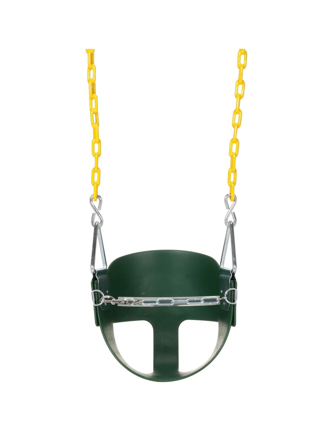 Descripción del producto El columpio de medio cubo de alta espalda de Eastern Jungle Gym es el accesorio perfecto para columpios para niños pequeños, bebés y niños. El asiento del columpio está parcialmente cerrado y cuenta con una alta espalda única y cadenas de seguridad en la parte frontal para que los padres puedan estar seguros de que los niños están columpiándose de manera segura. Este columpio de medio cubo se puede adjuntar a la mayoría de las vigas de columpio de hasta 2.74 m de altura. El columpio de medio cubo viene completamente ensamblado con 1.68 m de cadenas de columpio de bobina recta recubiertas de zinc de 2/0 que son ajustables hasta 0.76 m. Los 0.76 m inferiores de las cadenas del columpio están recubiertos de plastisol amarillo para permitir un agarre suave y sin pellizcos que es cómodo incluso para los dedos más pequeños. El asiento del cubo está construido con plástico co-polímero de alta durabilidad que es altamente resistente, de alta resistencia y resistente a la corrosión. Del fabricante El columpio de medio cubo de alta espalda para su niño pequeño cuenta con un respaldo alto único para mayor soporte en la espalda, cadena de seguridad frontal para mayor seguridad mientras su hijo está columpiándose, y un diseño resistente, a prueba de clima y de óxido. El columpio viene completamente ensamblado y se adjunta a la mayoría de las vigas de columpio de hasta 2.59 m de altura. Características Cadenas de columpio de bobina recta recubiertas de plastisol que son más fuertes que la cuerda, diseñadas para un agarre suave y sin pellizcos.