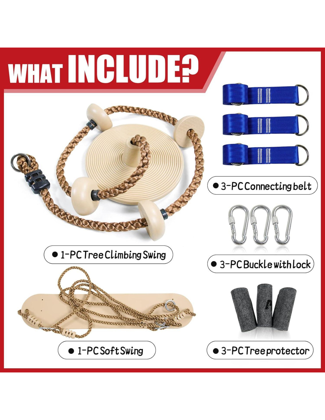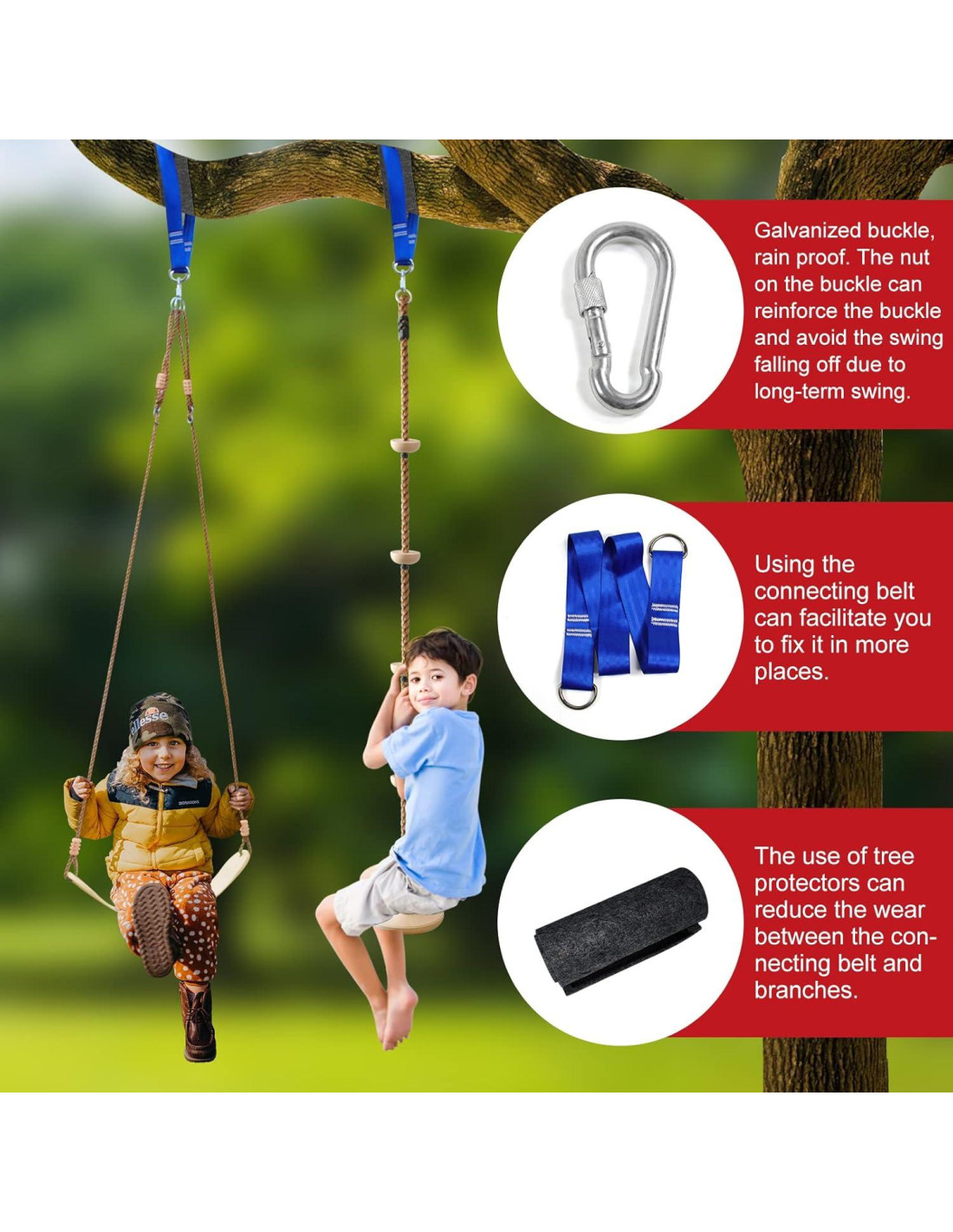 - [Fácil de instalar] La cuerda de escalar para niños incluye un columpio de árbol, un asiento de columpio, 3 protectores de árbol, 3 ganchos y 3 correas para árboles. Se puede instalar en tu patio trasero, parque infantil, solo un tronco de árbol resistente o un poste de metal, solo unos minutos.