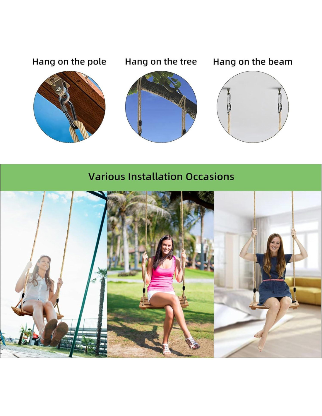 - El paquete incluye: 1 asiento de columpio (con cuerda ajustable) y 2 hebillas de conexión; si encuentras algún problema durante el uso, ¡contáctanos por correo electrónico de inmediato!