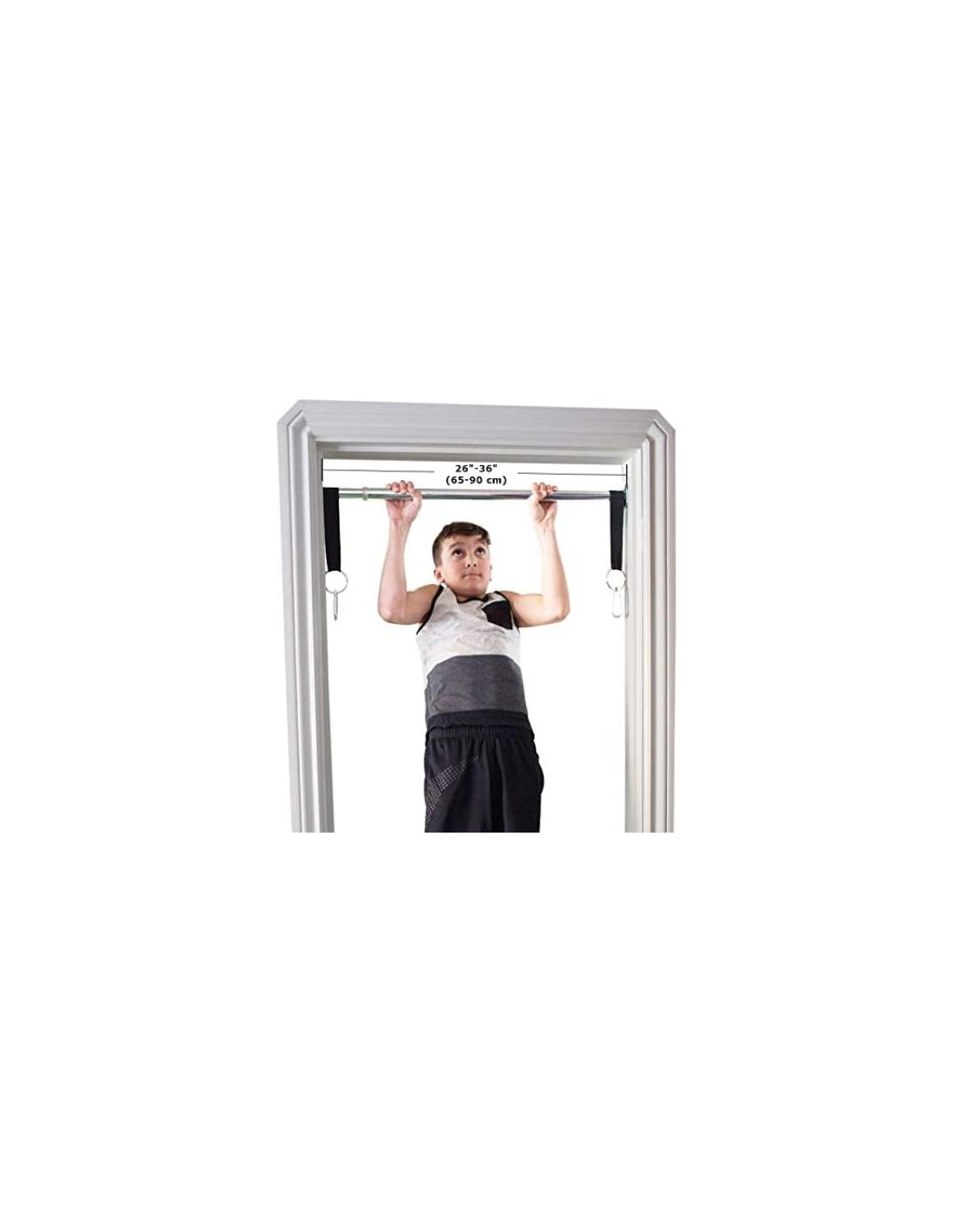 - Importante: Los soportes requieren 5.7 cm (2-1/4") de superficie PLANA. Se adapta a marcos de puerta de 66 cm (26") a 91 cm (36") de ancho.